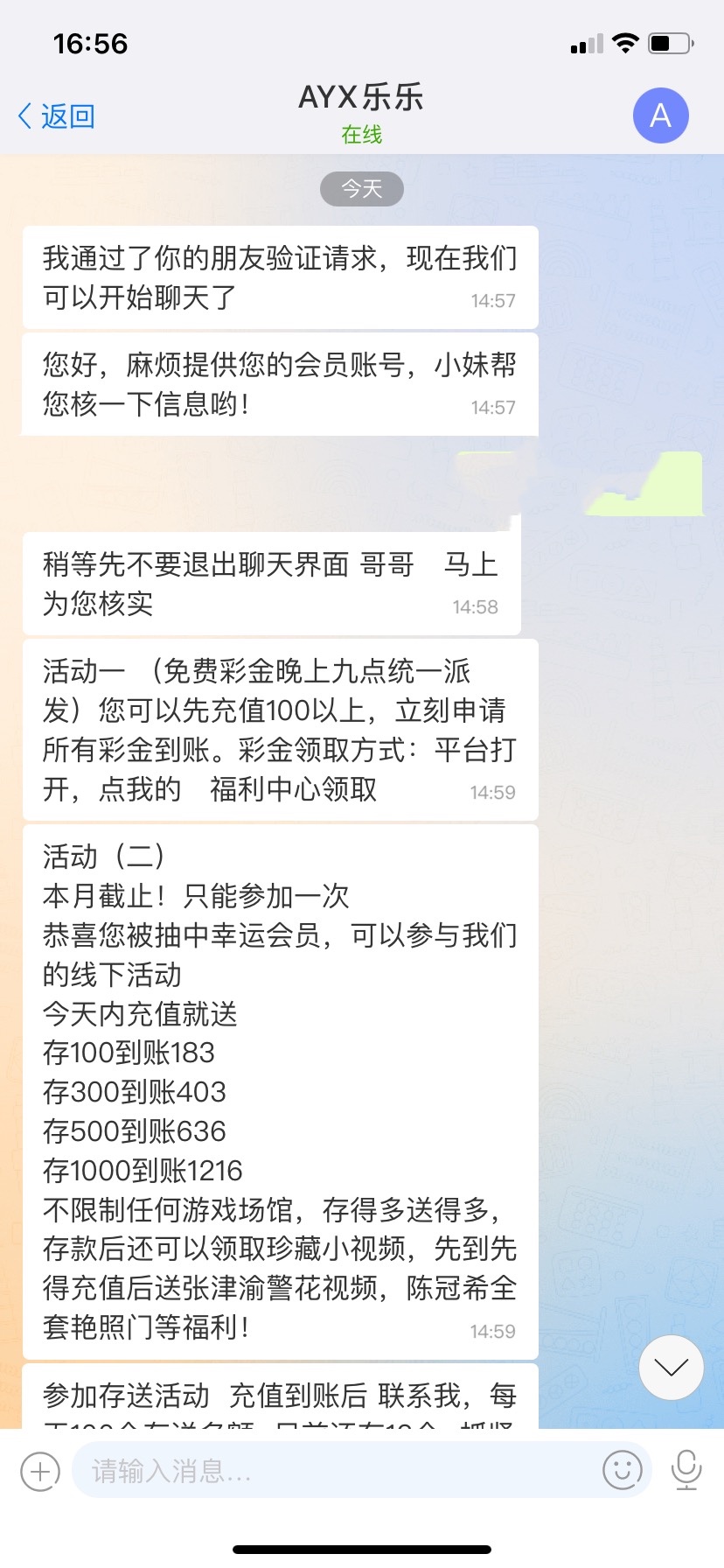 这种平台给我们彩金就是玩我们想要我们充值,赢得人封号,亏得人充值继续妈的,充值的都是半黑,还指望免费我能提出来,我真傻,以后这种电话我直接挂断