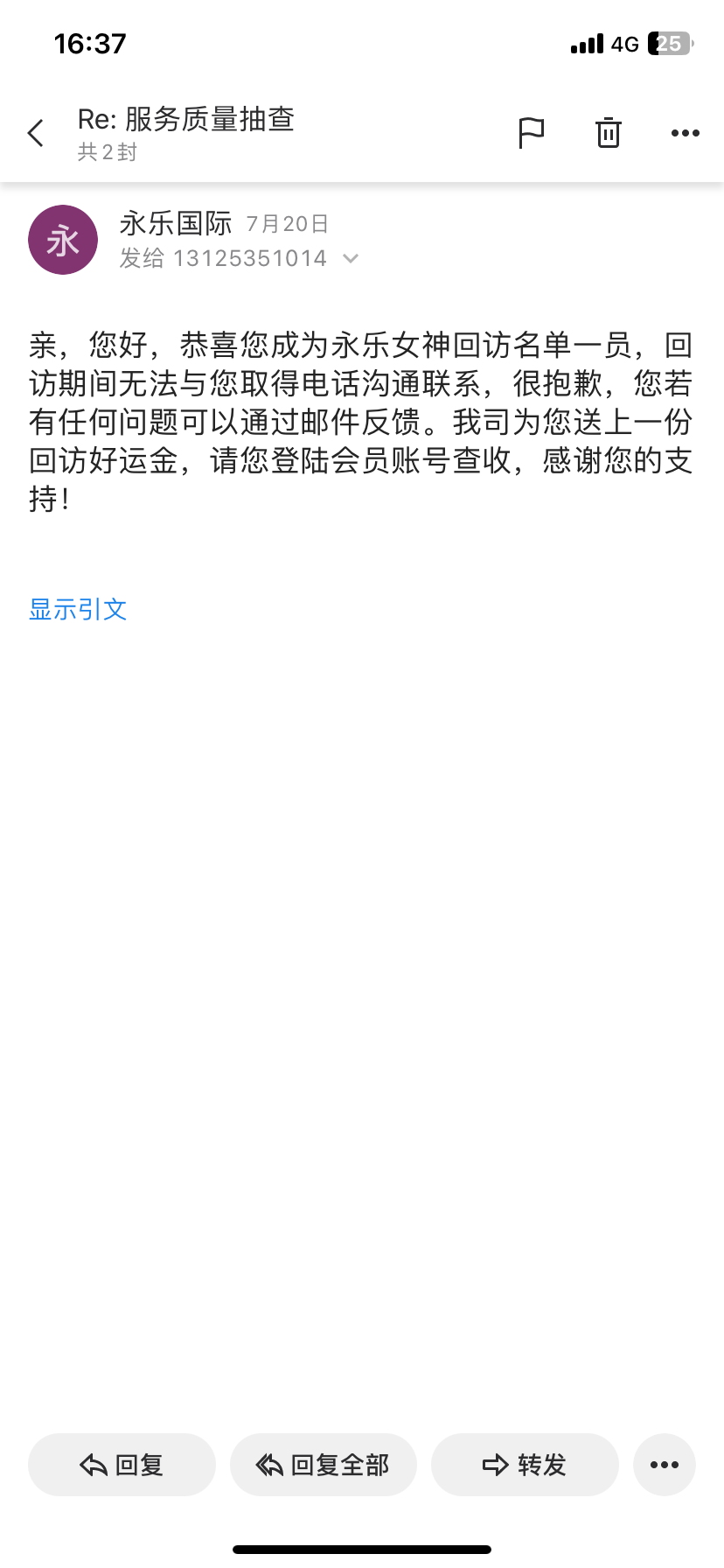 永乐国际发邮件等回访彩