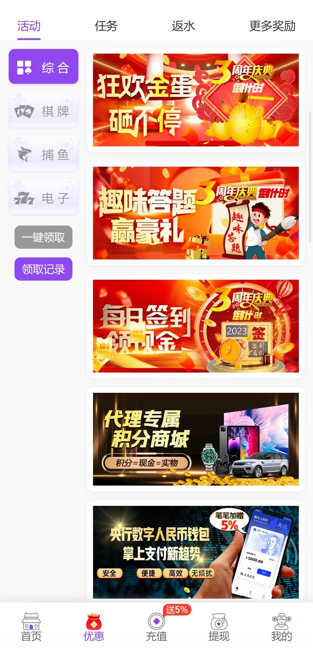 有新出周年庆典活动,砸金蛋/答题/签到/咨询客服就可以了。