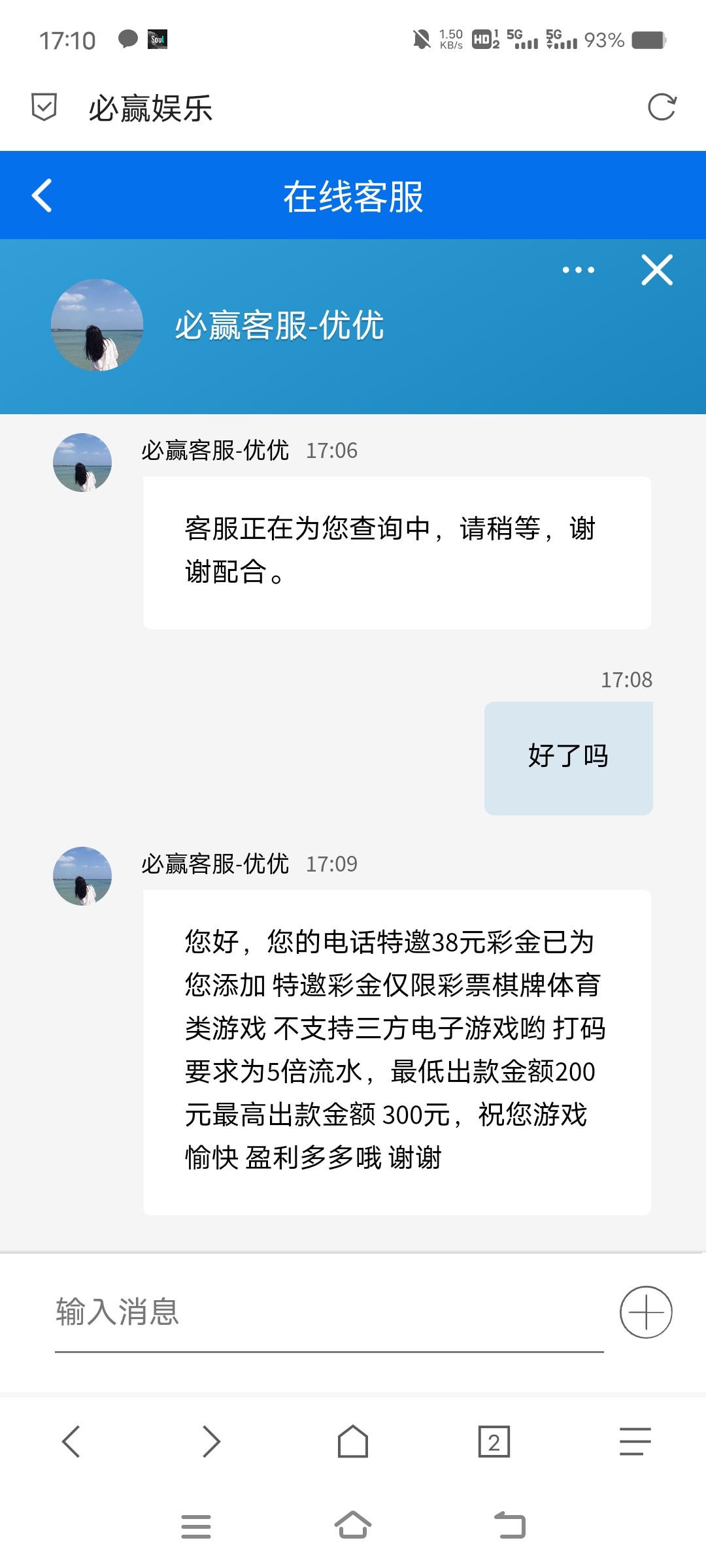 送18 彩金10倍流水 还没到账
