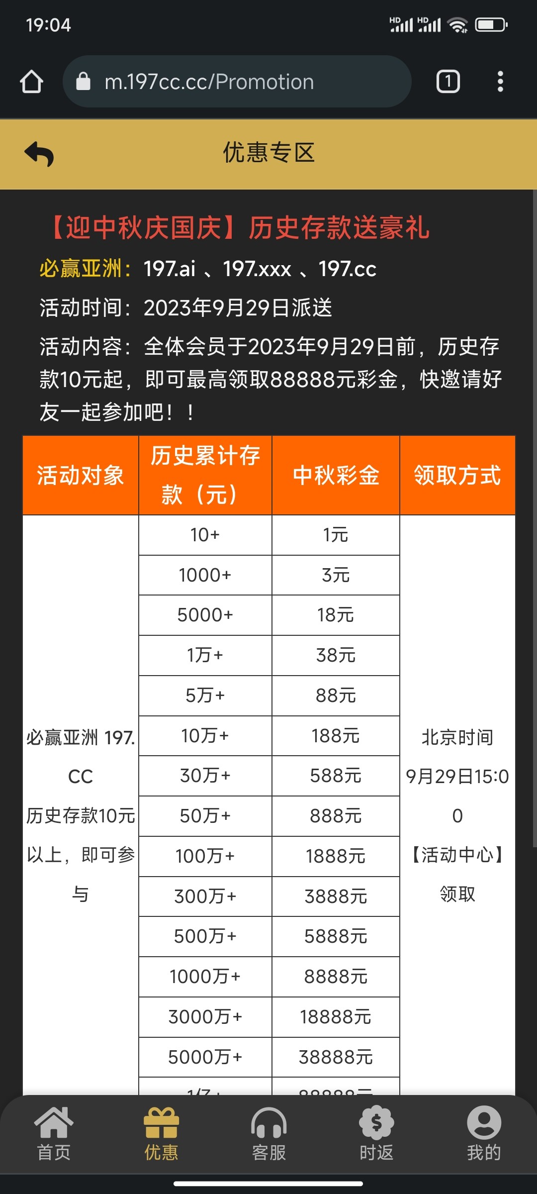 197的历史存款回馈彩金