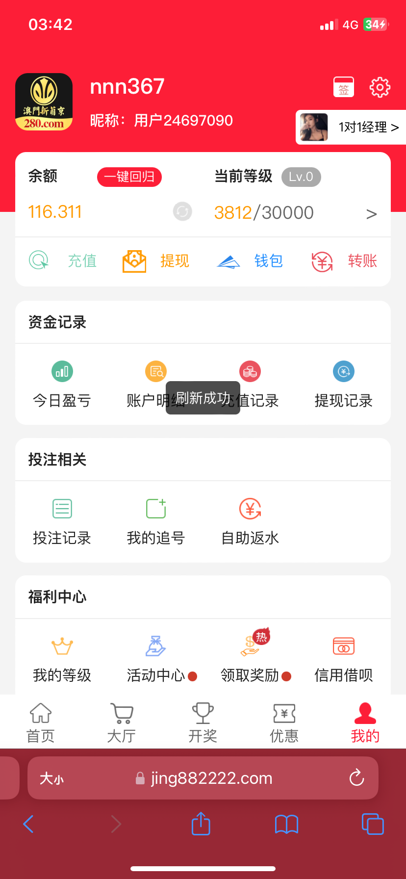 nnn367 我是充值过的 然后上号就有116
