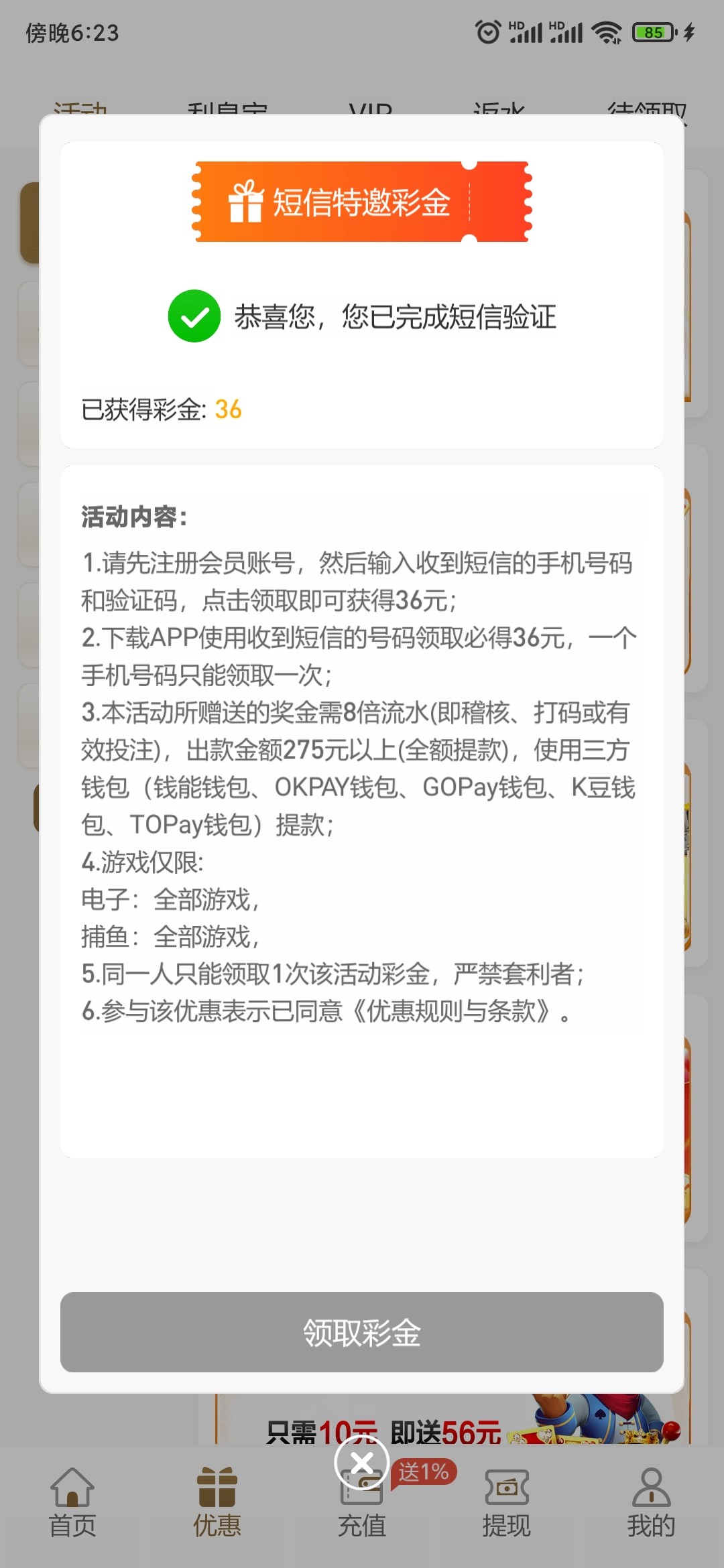 下载APP注册活动里面接验证码,是特邀秒36,八倍流水最低275提,限制自己看,没碰到别喷,基本都有,链接自己看图