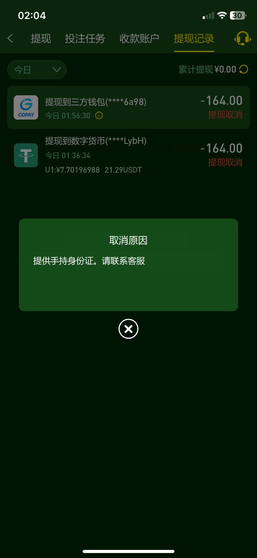 充10块钱提300手持了还异常