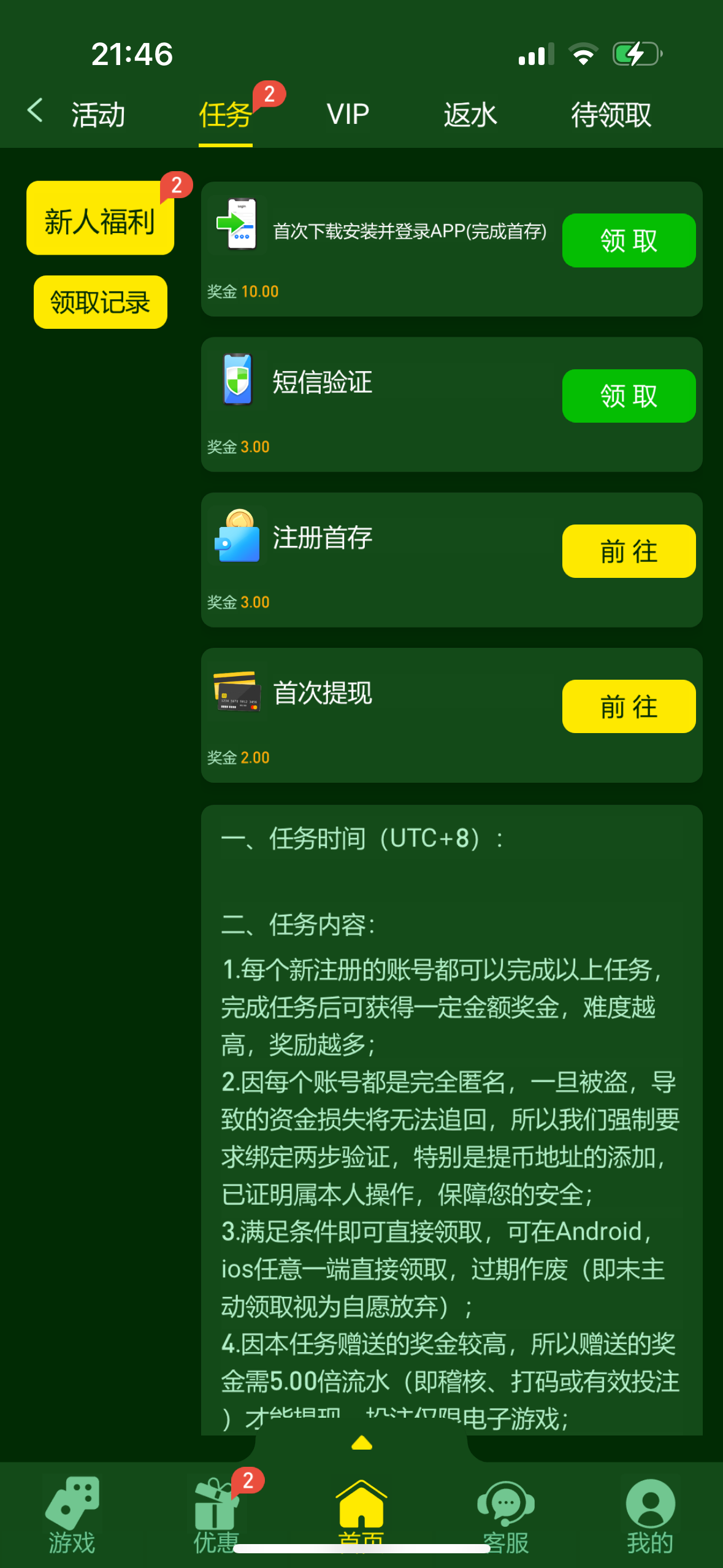 我是跟后面人说的,前面我注册的不用充,可惜打麻将到40不舍得换游戏打没了