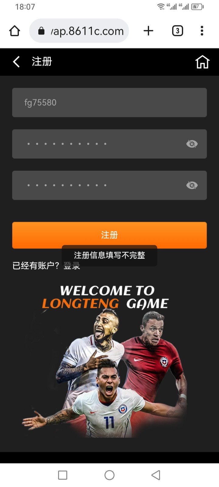 注册信息不完整怎么个事