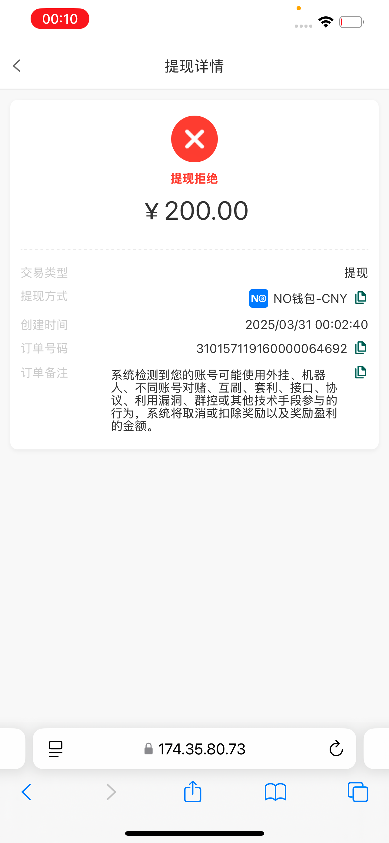 提现拒绝