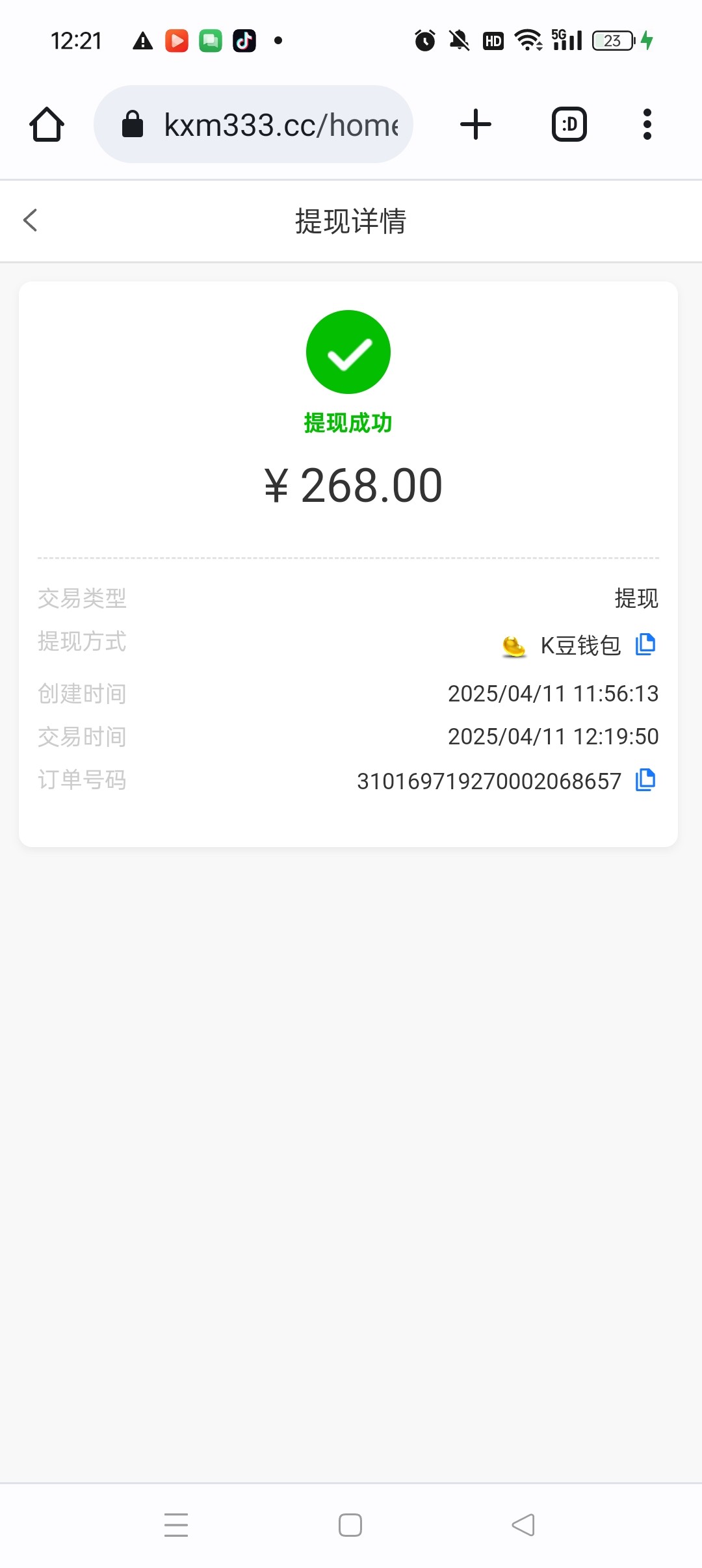 qq604161 提现到账了