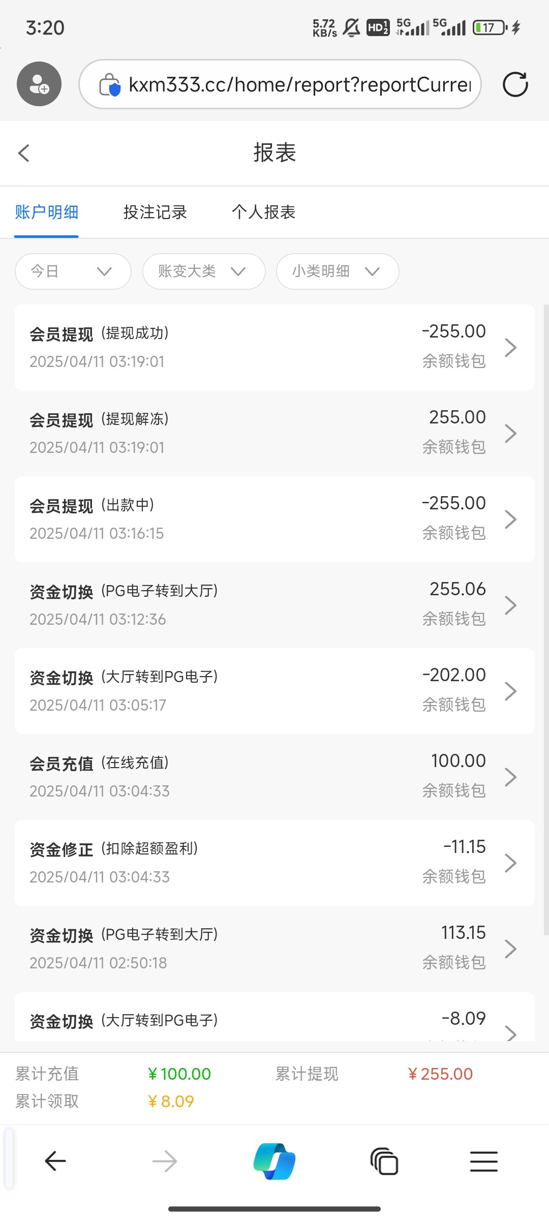 到账了 除去充值100 吃肉135