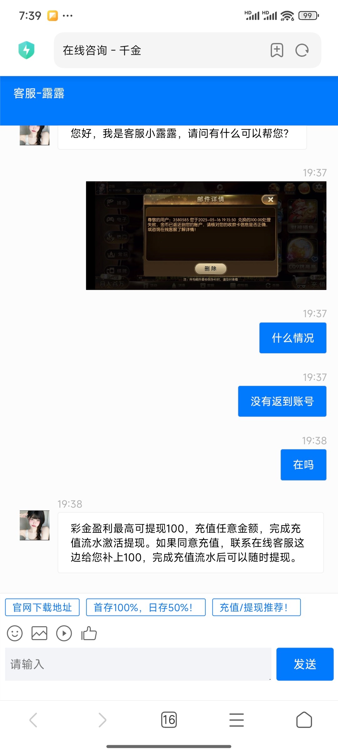 就我提现被退回?要求充值任意金额打一杯水然后我又提交就全被扣了