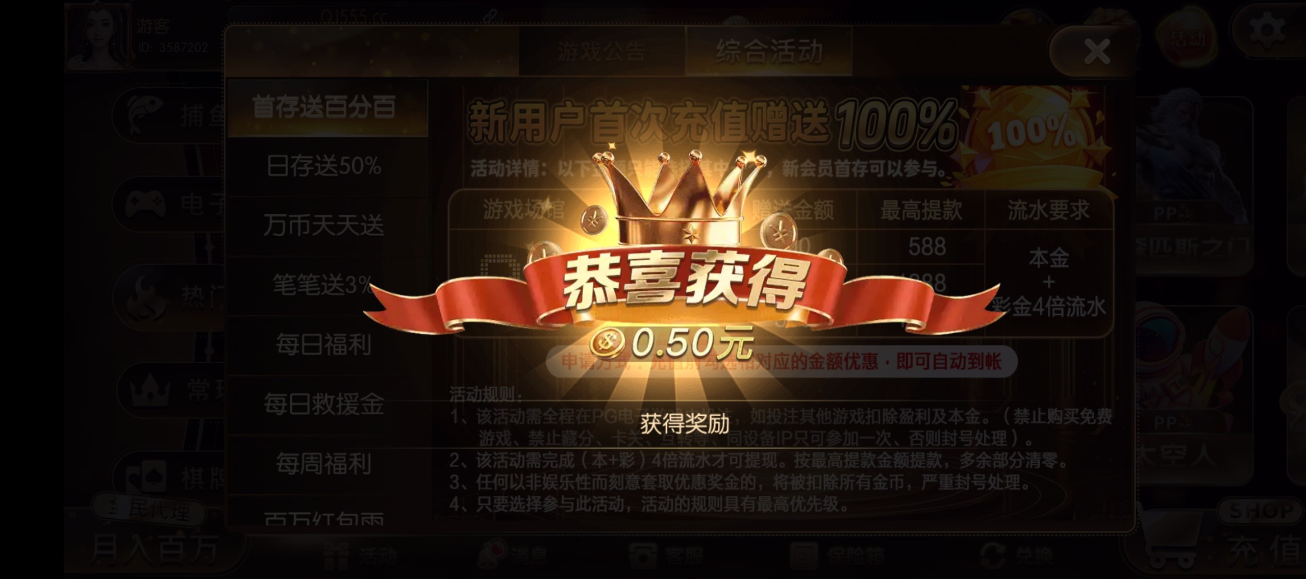 新用户注册前三天每天3333名额送8-38彩金