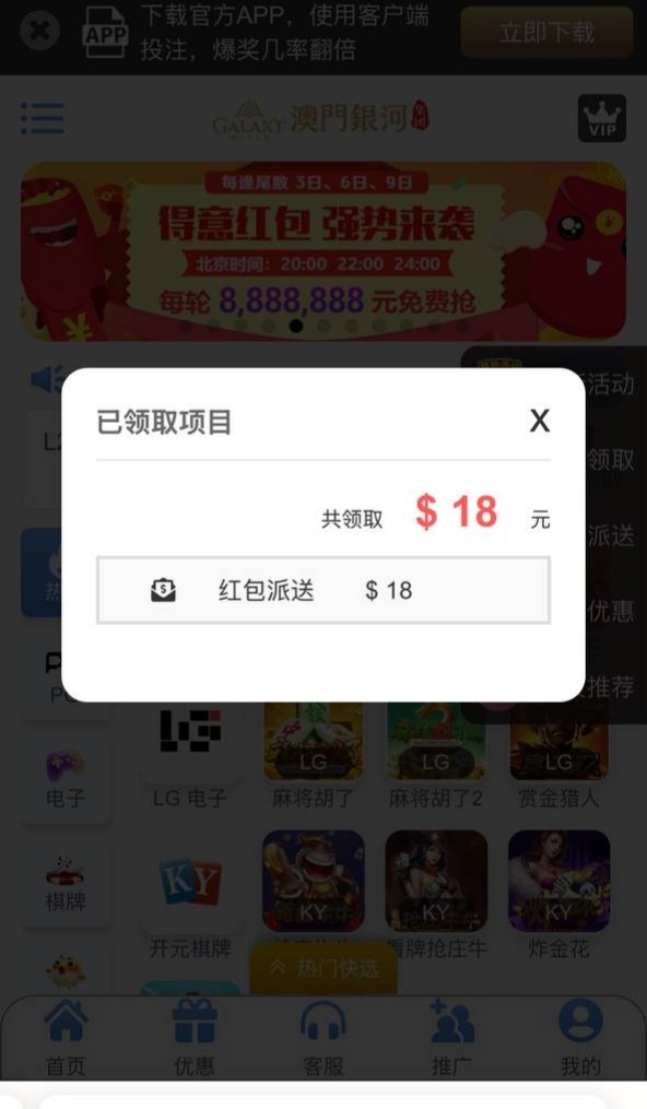 老用户登录有号弹窗18彩金,有就有没有无视吧,具体自测