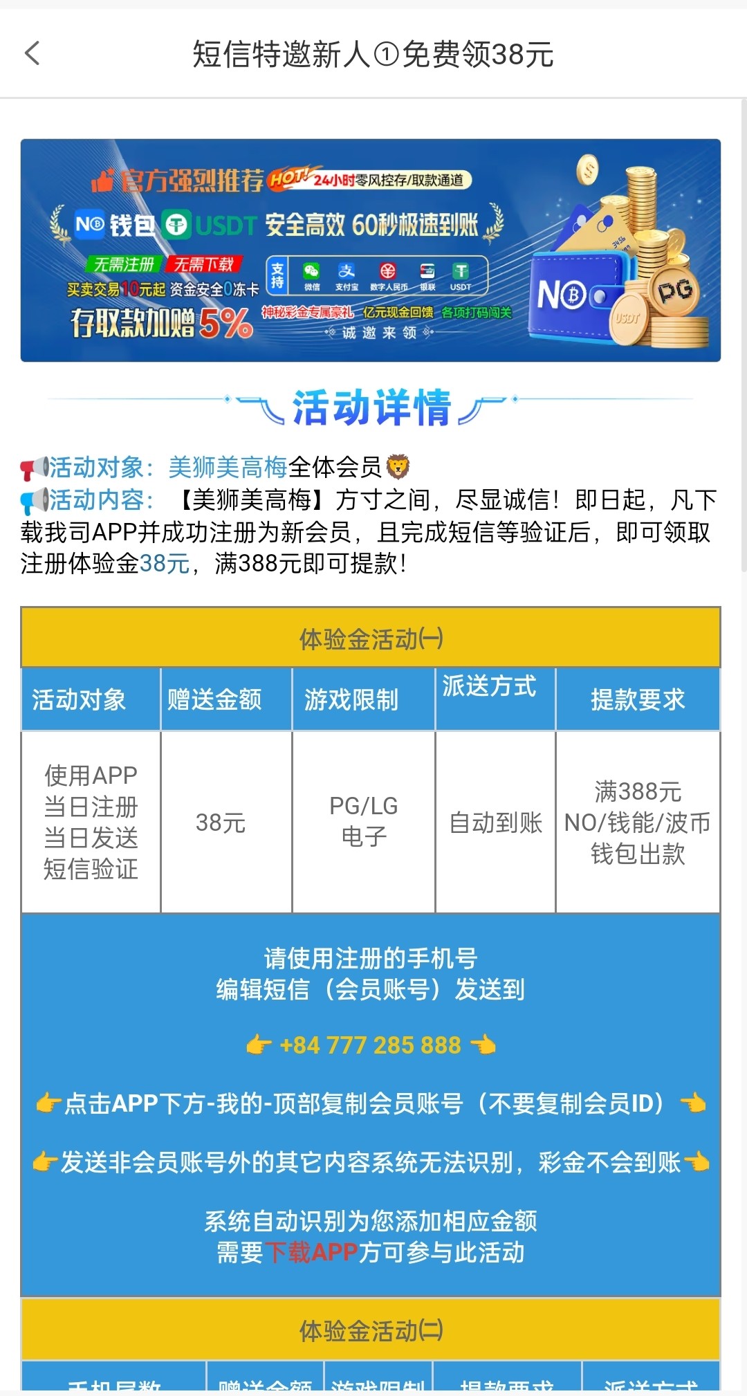 老新用户注册下载绑定好信息发短信自动到账38彩金,限制pg/lg限制388出款具体自测吧