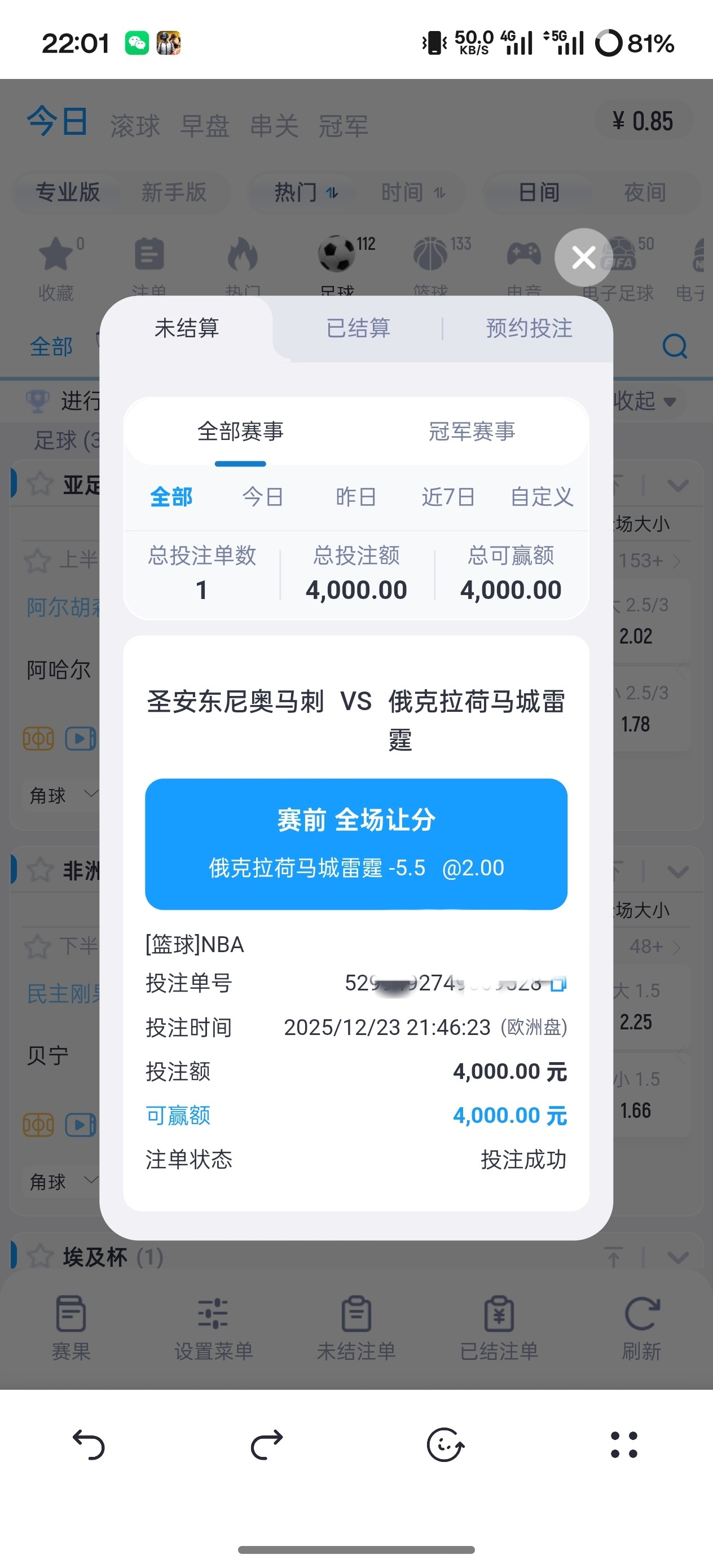 这把马刺必赢的,你选了他赶紧撤单,输了有那个法国胜雷霆赢不了的