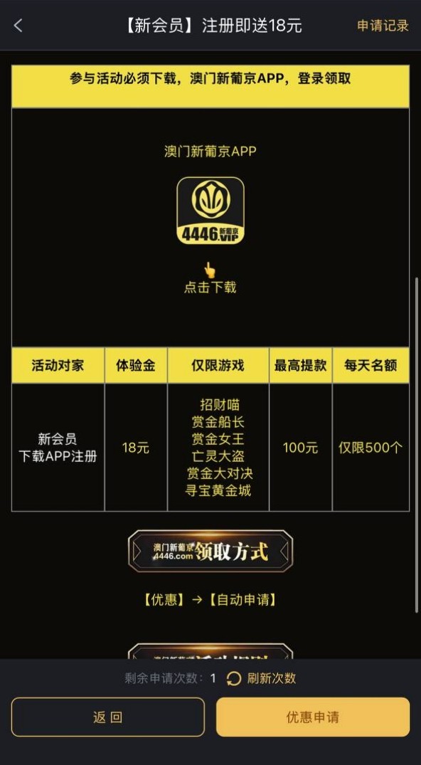 新用户自助验证申请18彩金,有就有没有无视吧