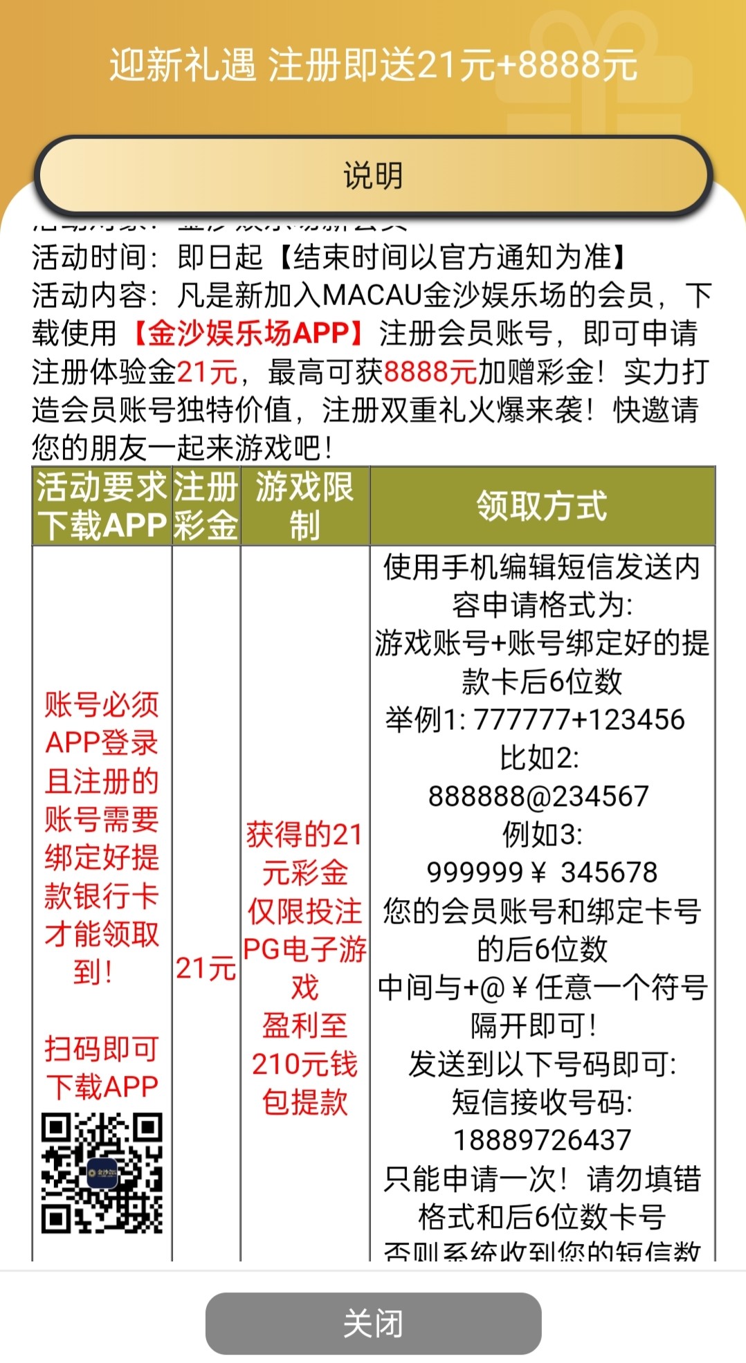 新用户下载app注册完善信息发短信领取21彩金,具体自测吧