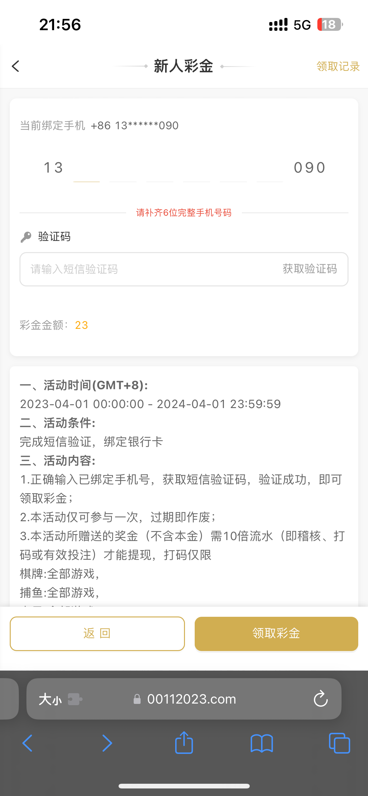 自助送23彩金