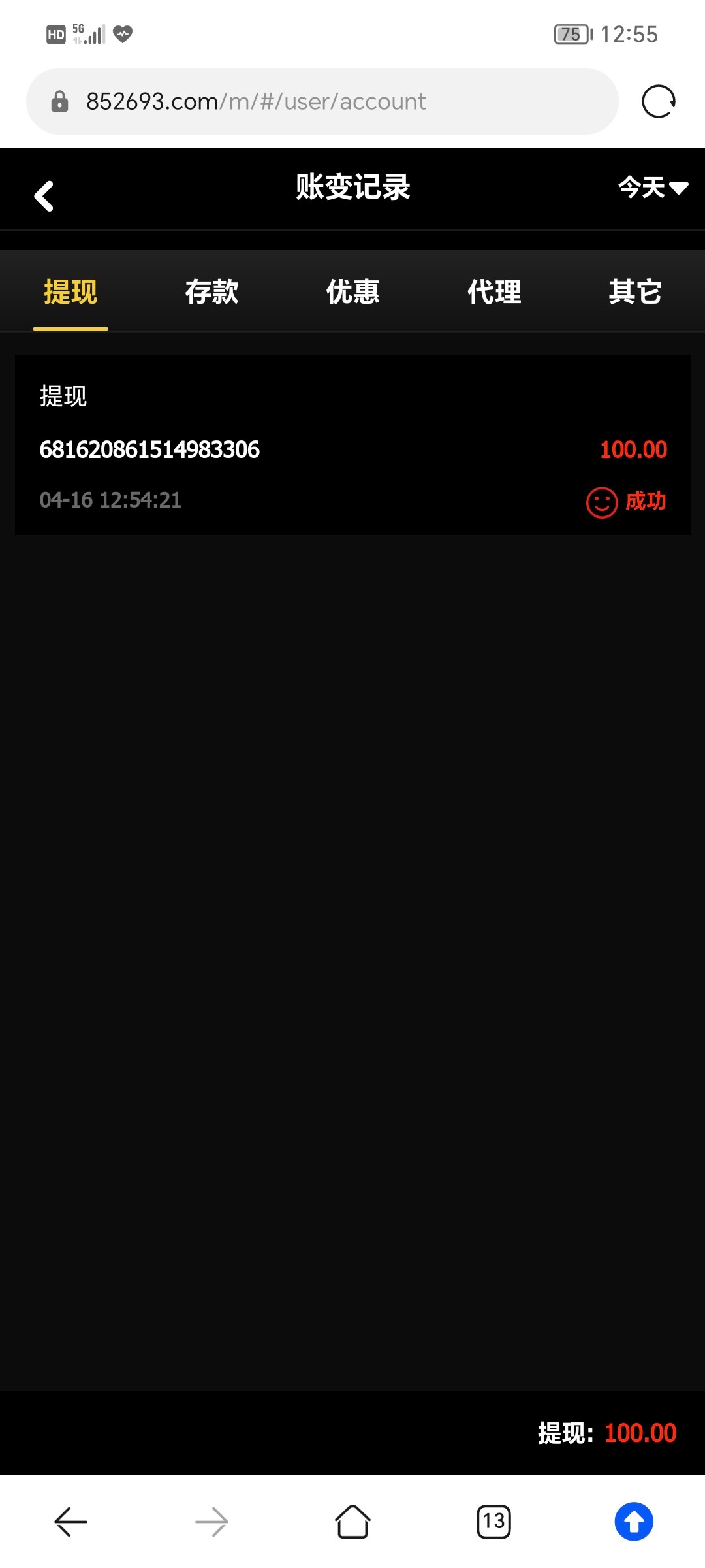 注册好账号等即可,只能提100,秒到账