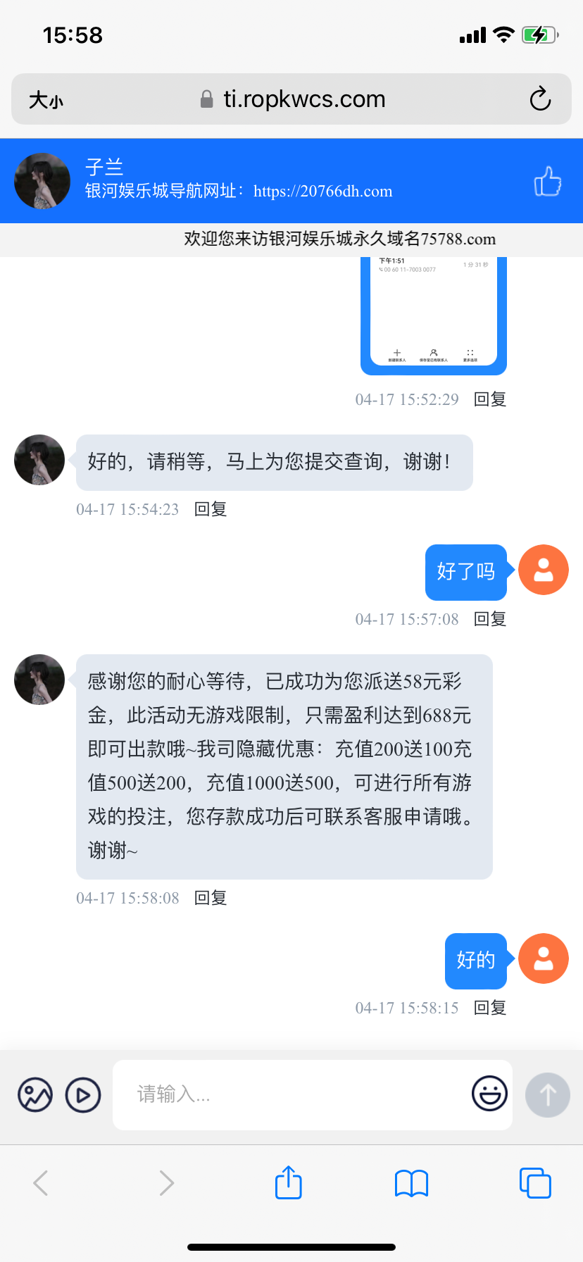 碰瓷给手机号客服送58