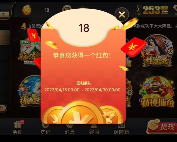 253回归红包彩金