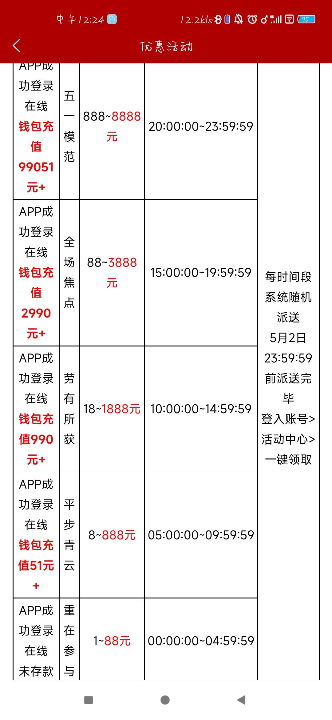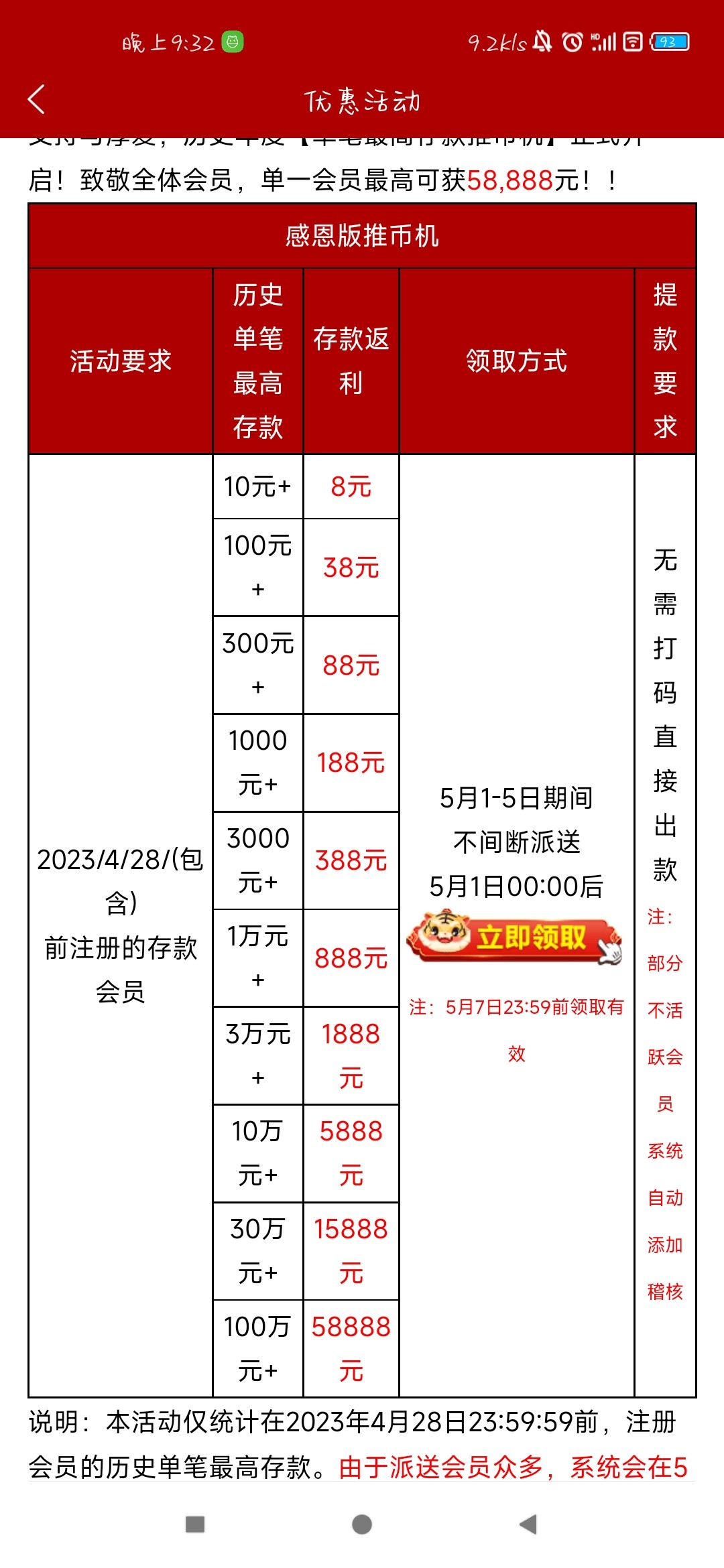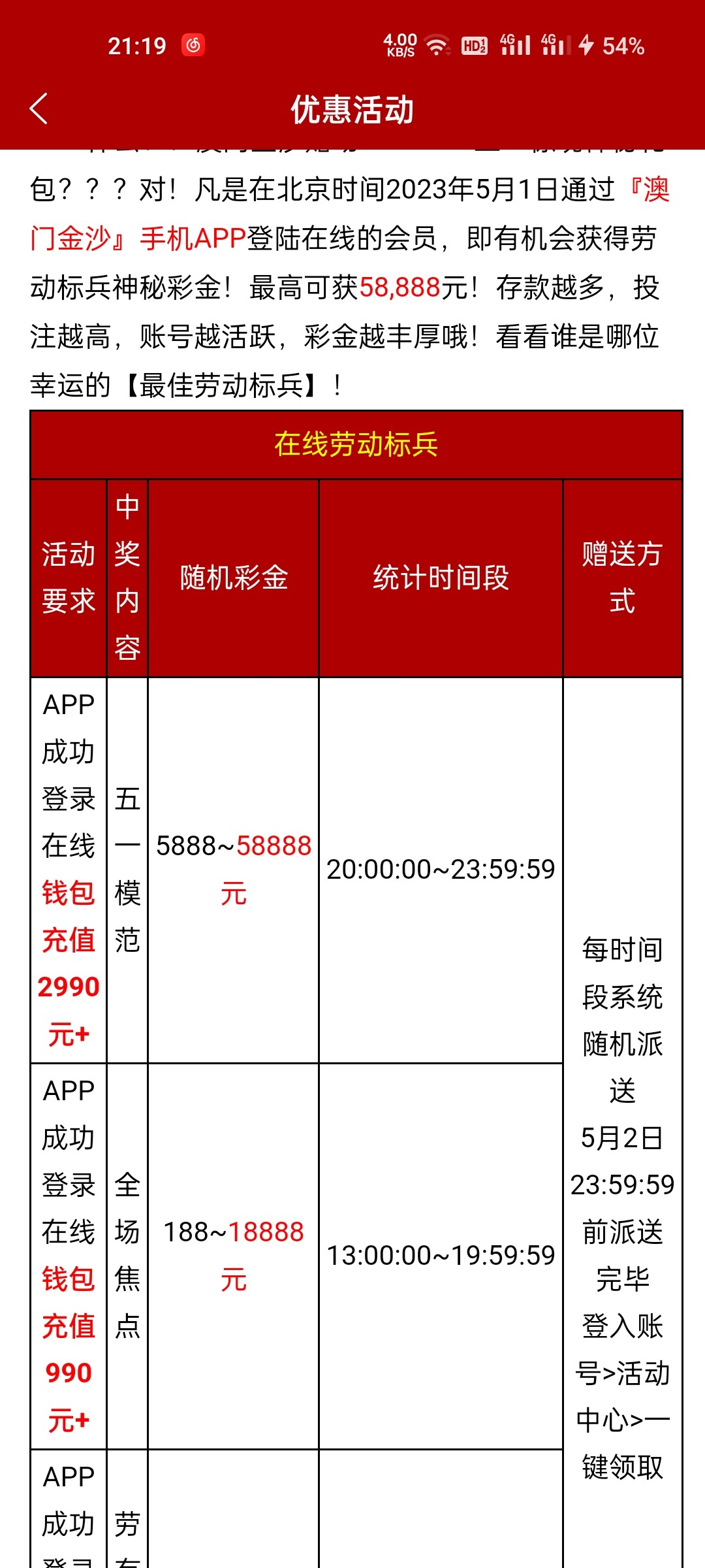 990的5.1回馈彩金