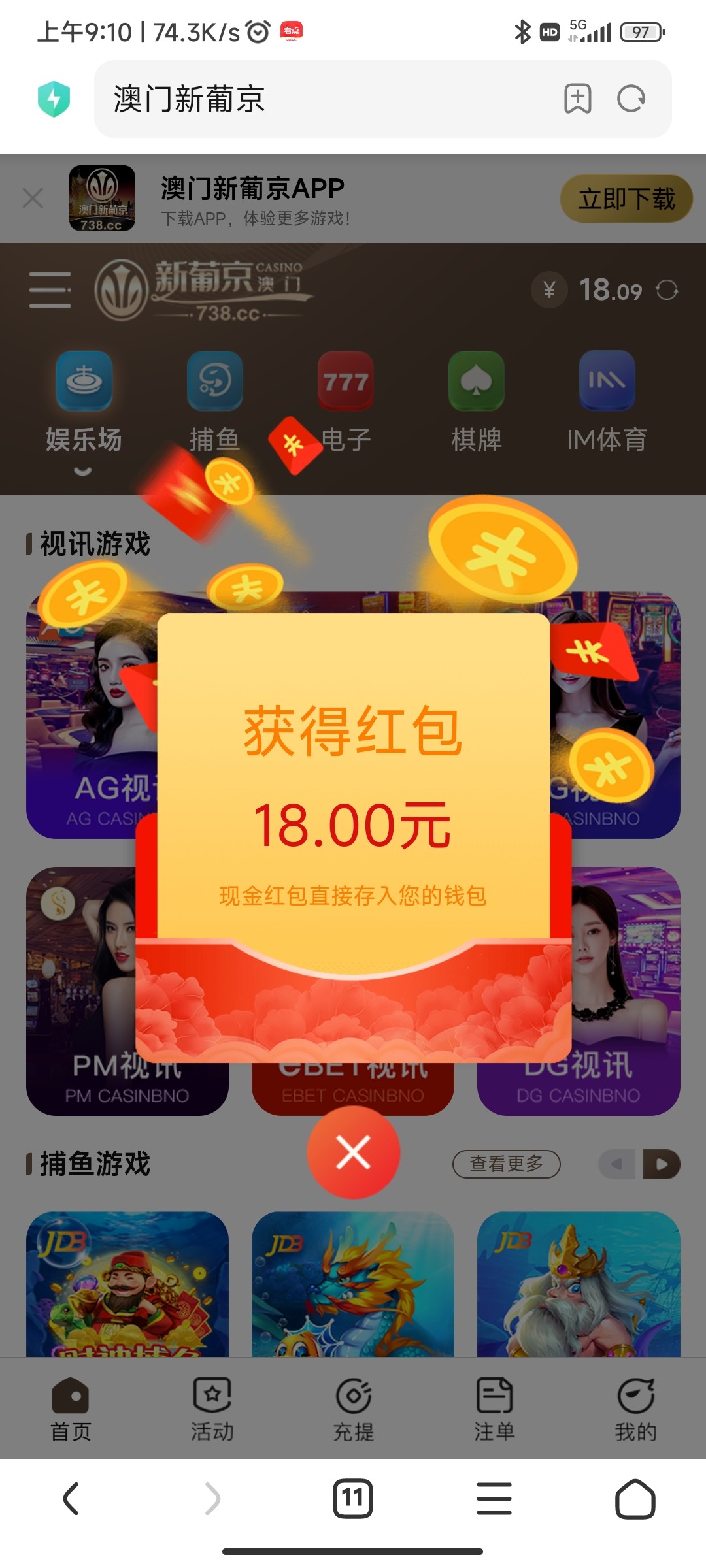 这个送了,必赢也送,我上次领了两次了