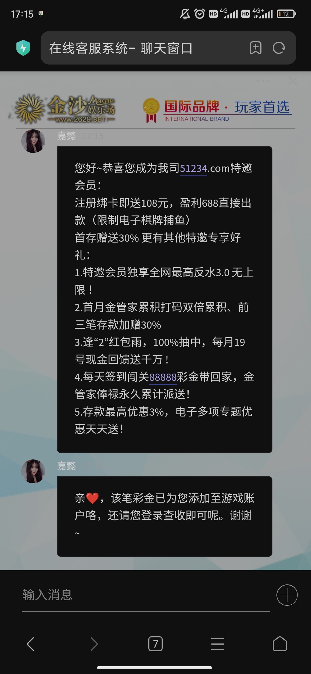 我用卡二去申请手机他说未在名单内,然后我说手机号发错了应该是我卡一的特邀,然后过了一会彩金就到了[em_1]