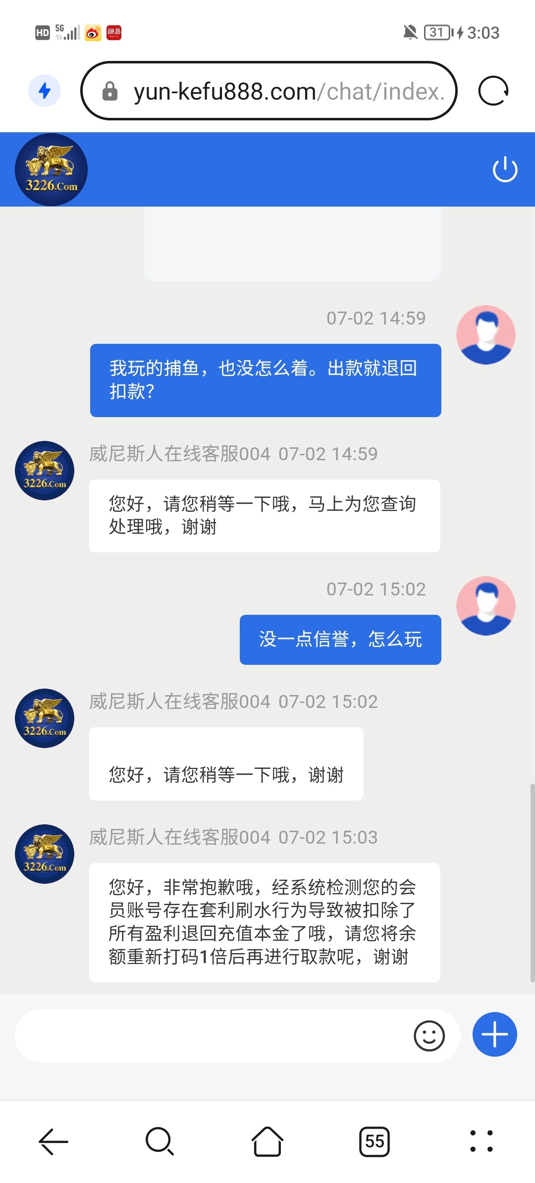 澳门威尼斯人3226,黑台子,两天了黑我五百不到账,一直以三方出款核实为借口,黑我500,应该是狗庄黑钱新话术甩锅给出款方,各位避雷!!