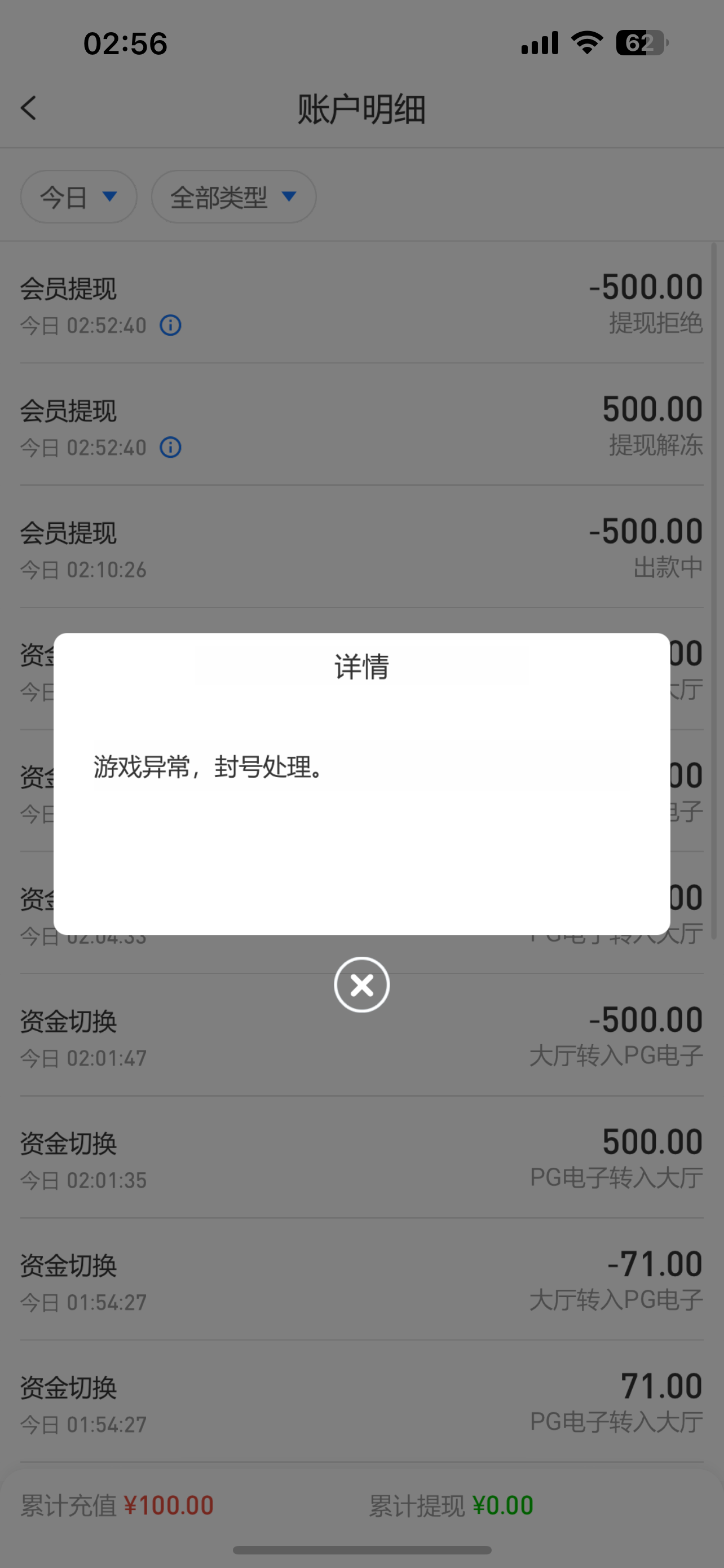 我就打pg提500不给,还不退本金,一直都这话