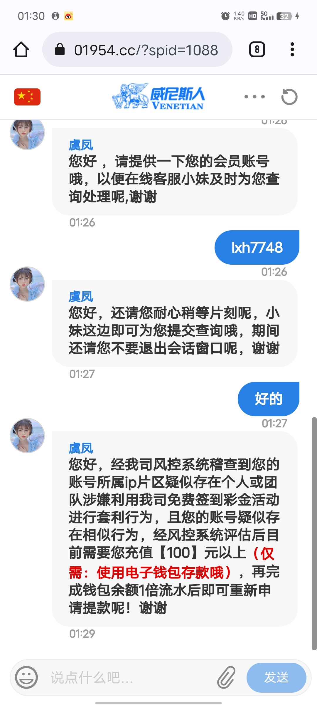 打到105不给提要充100 充了打上1104客服又说签到的钱只可以体现138剩余的全给我扣了666