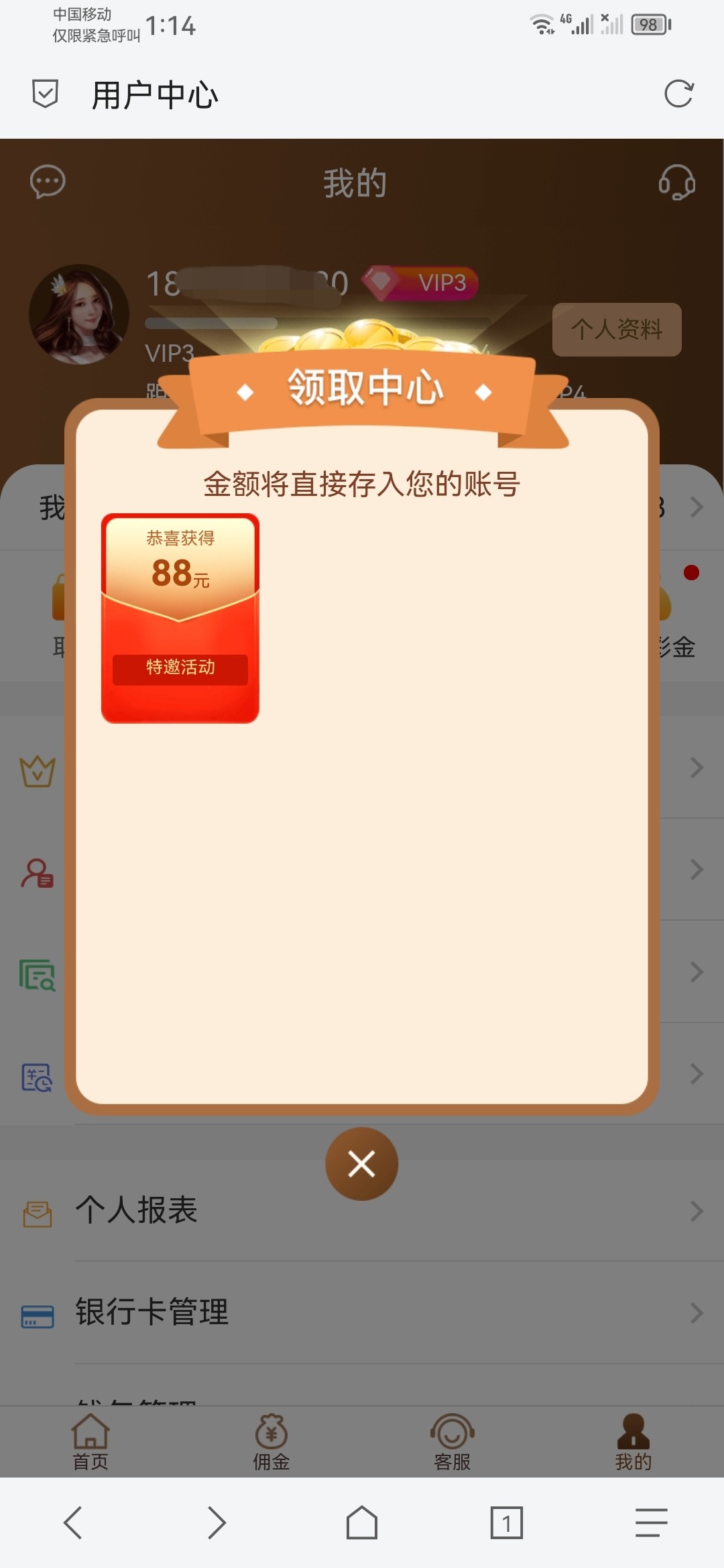 35273棋牌特邀彩金,今天打电话来的,不是新用户注册 是类似于回访的都去看一下领取中心有没有