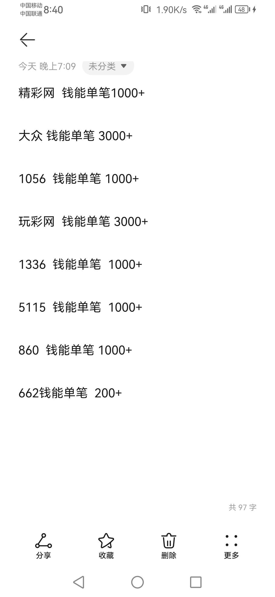 钱能历史单笔回馈