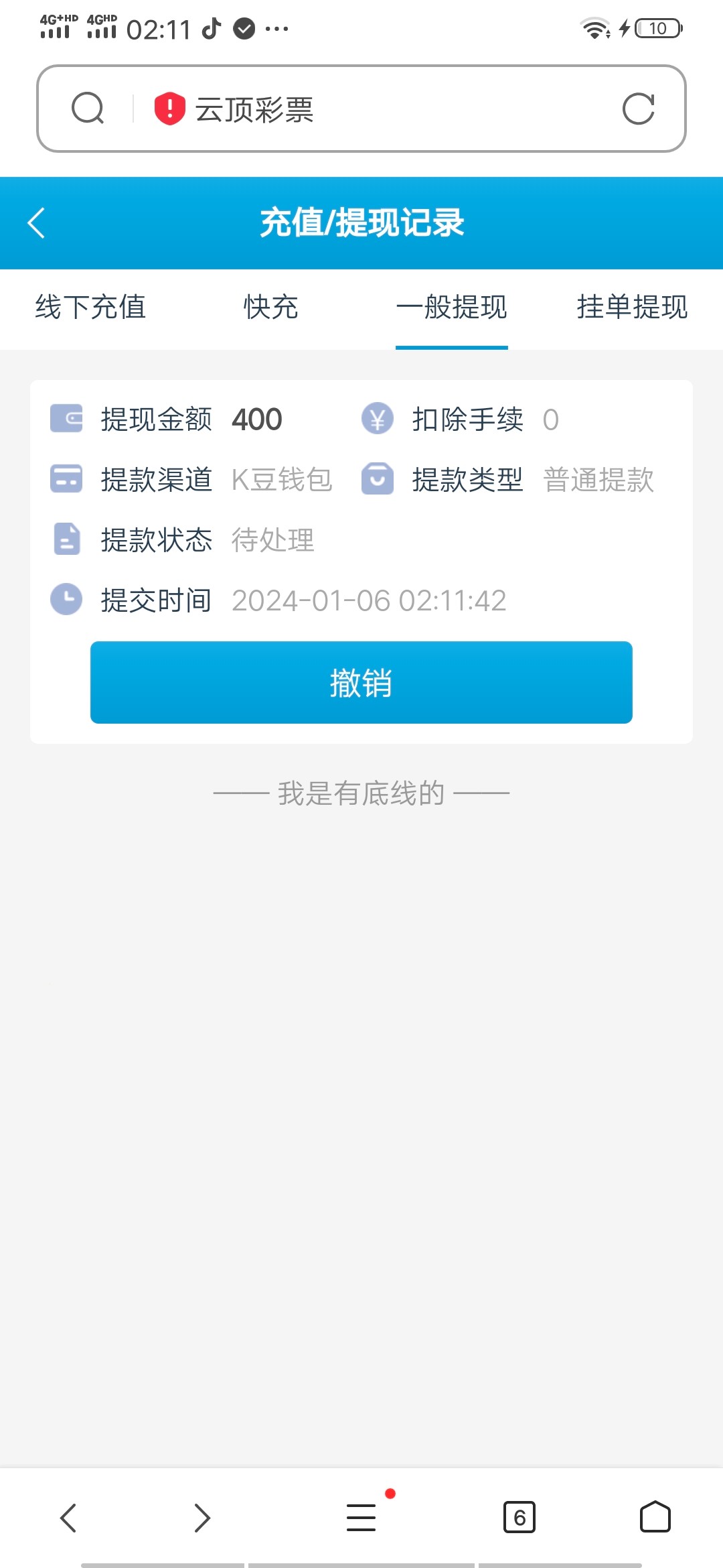 提了一百,留了一百准备在玩起来结果输了,提的已经到账。