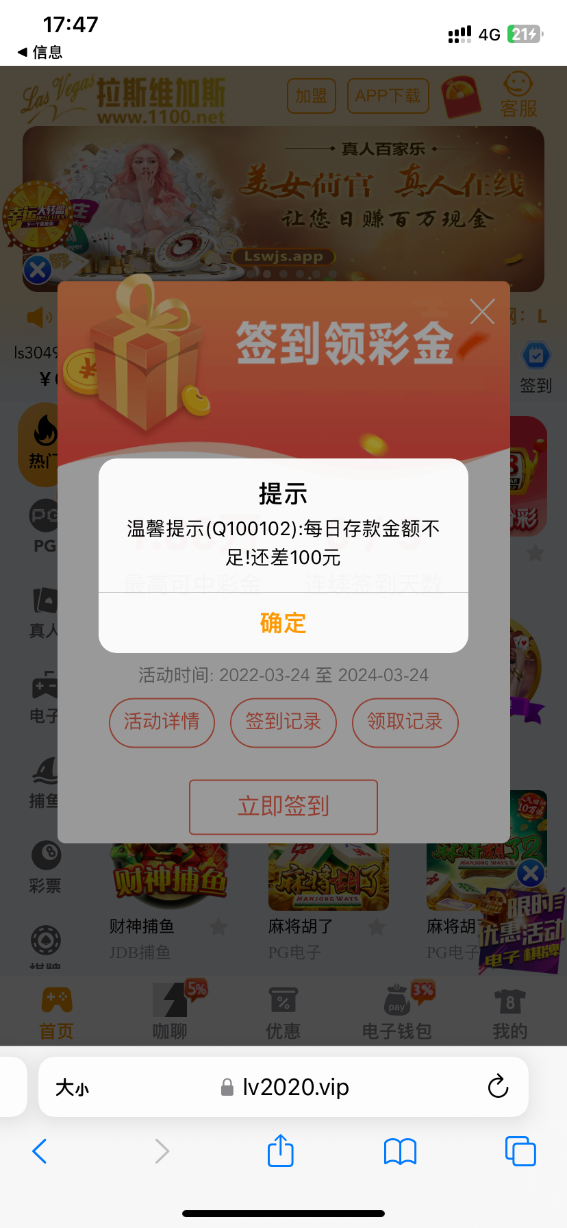 https://www.lv2020.vip/m/#/Center,首次提现要充钱,我充了一百到账了,介意的话就别去了