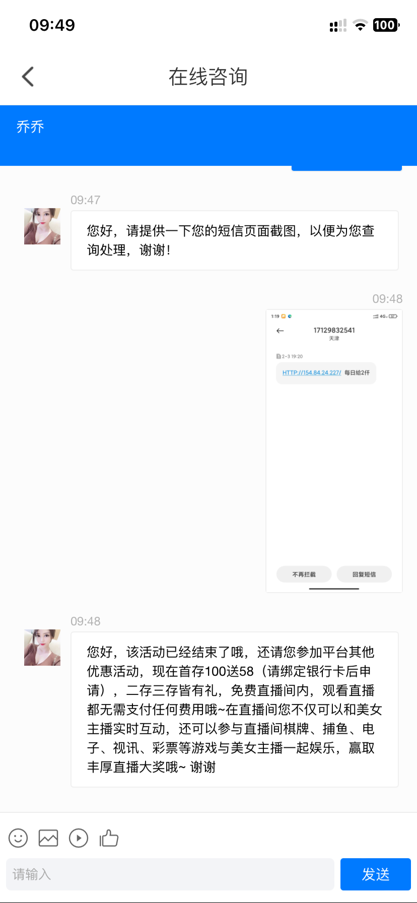 您好,该活动已经结束了哦,还请您参加平台其他优惠活动,现在首存100送58(请绑定银行卡后申请),二存三存皆有礼,免费直播间内,观看直播都无需支付任何费用哦~在直播间您不仅可以和美女主播实时互动,还可以参与直播间棋牌、捕鱼、电子、视讯、彩票等游戏与美女主播一起娱乐,赢取丰厚直播大奖哦~ 谢谢