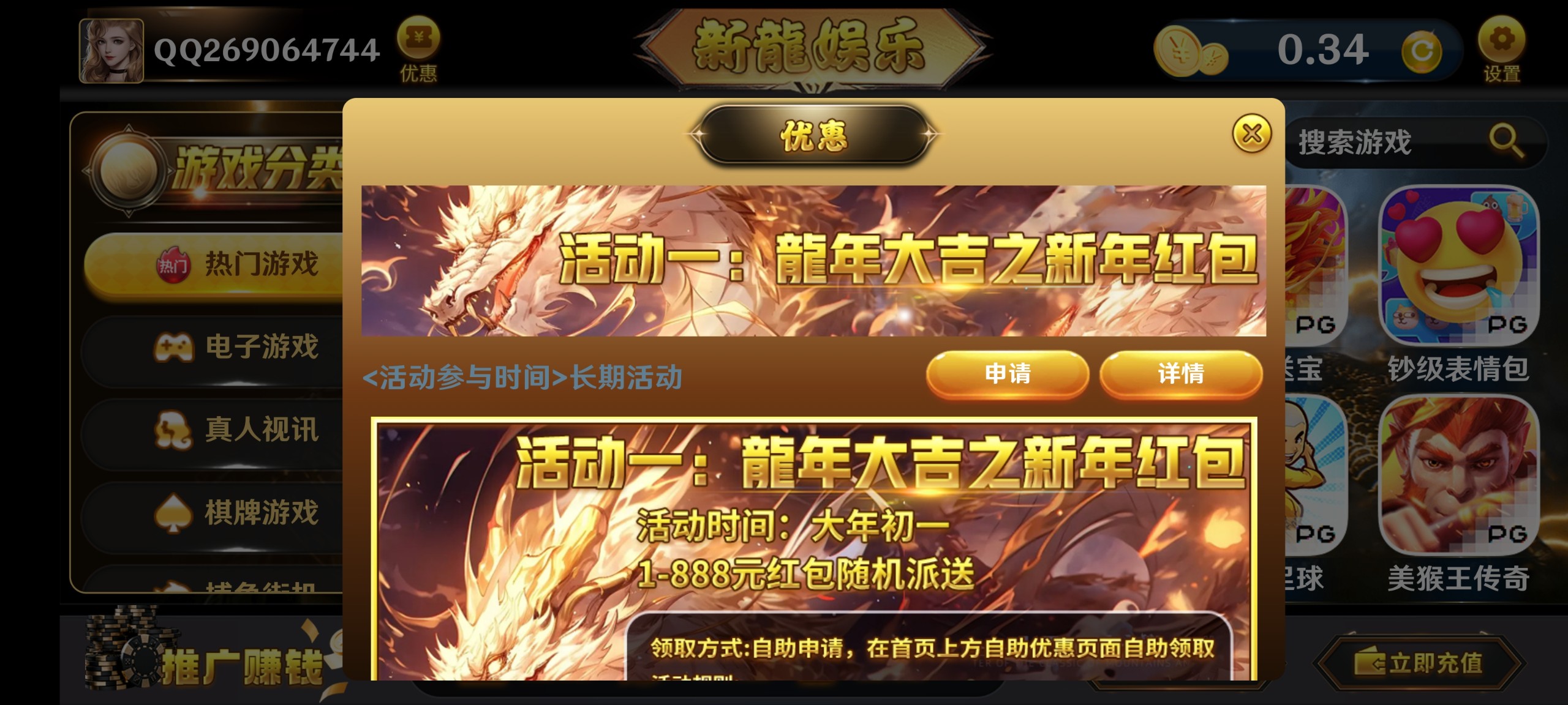 新龍充值过的回馈彩
