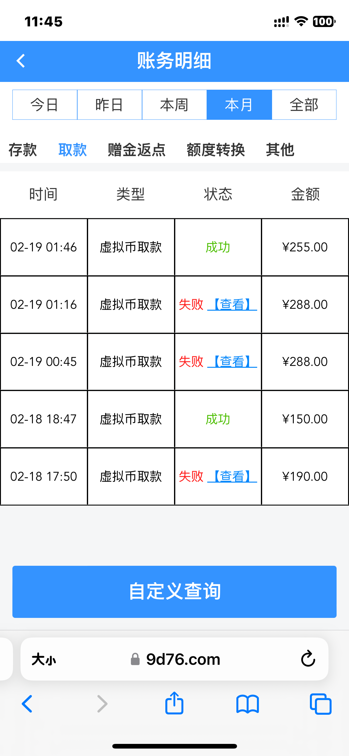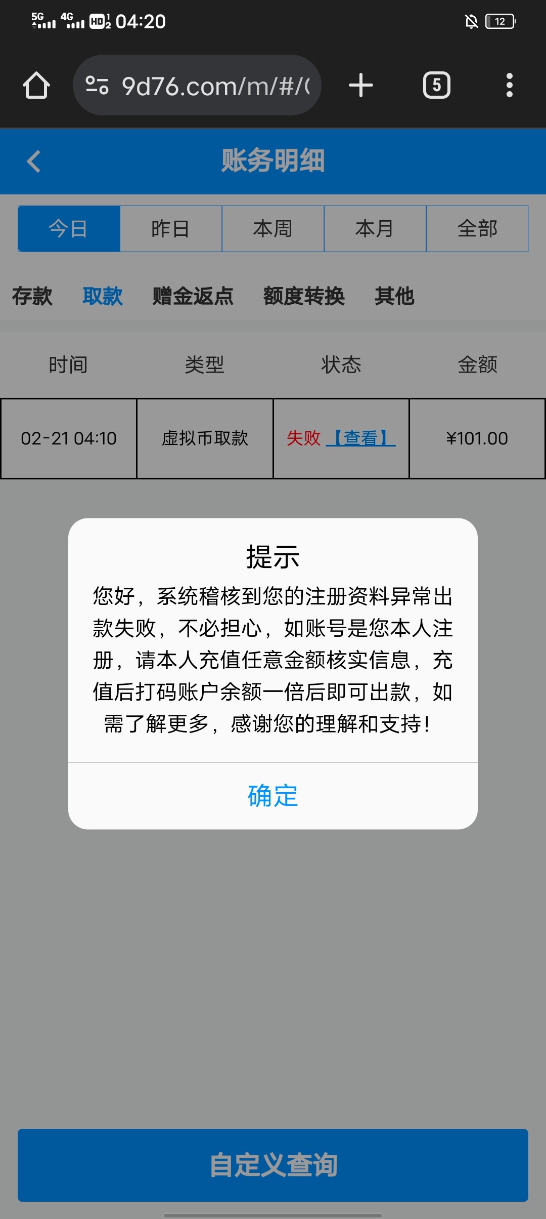 我提现失败