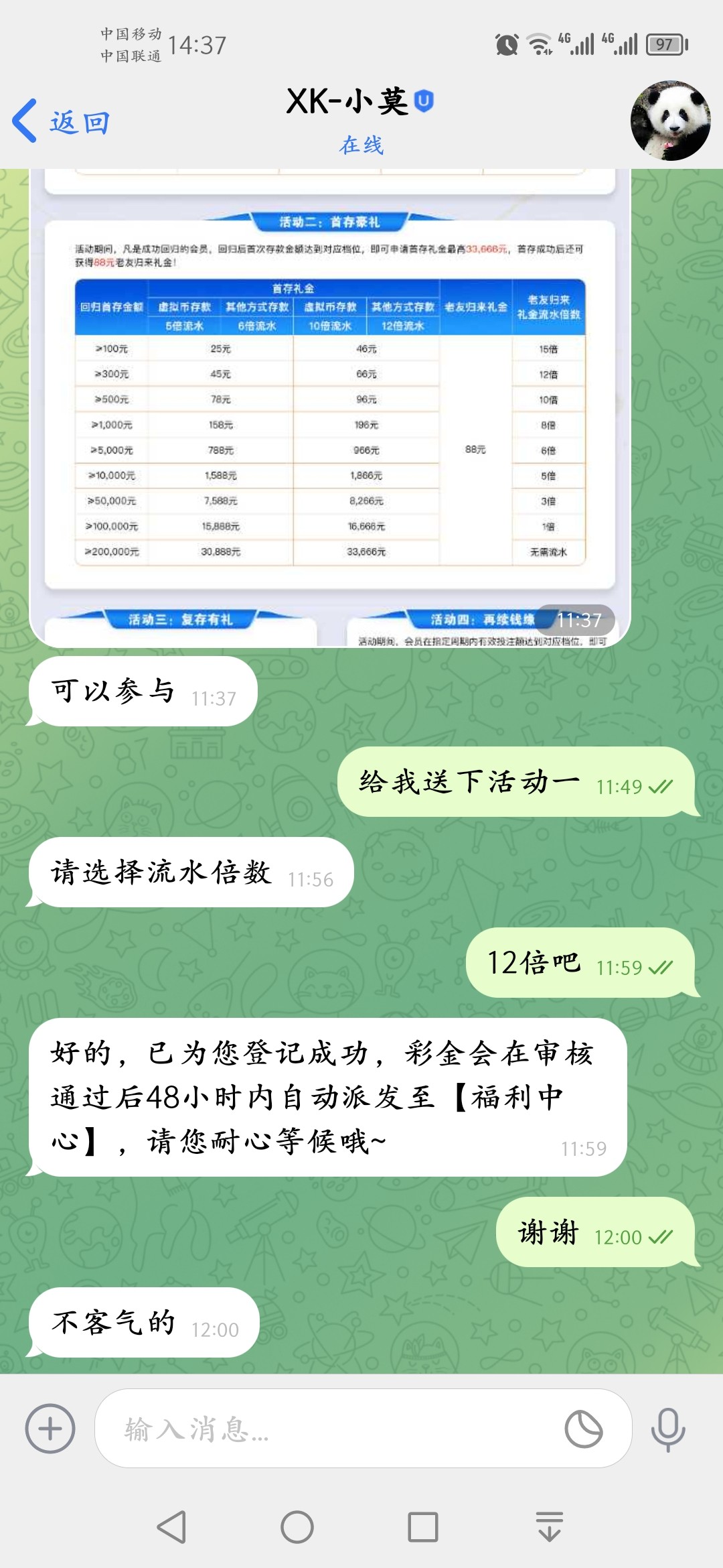星空回馈,自行找专员领