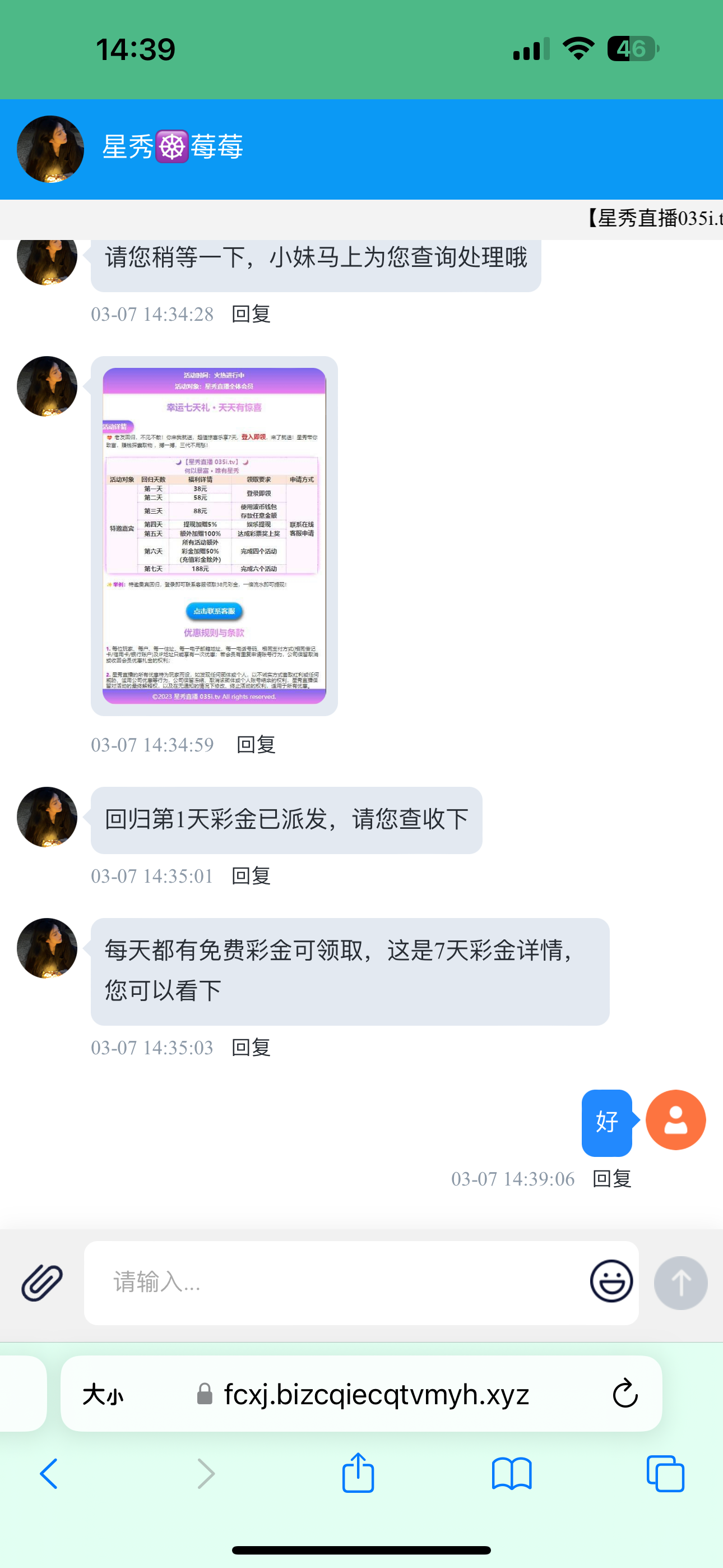 那个客服是真人来的,不是摆设的说话最好好听点,假装小白那样问