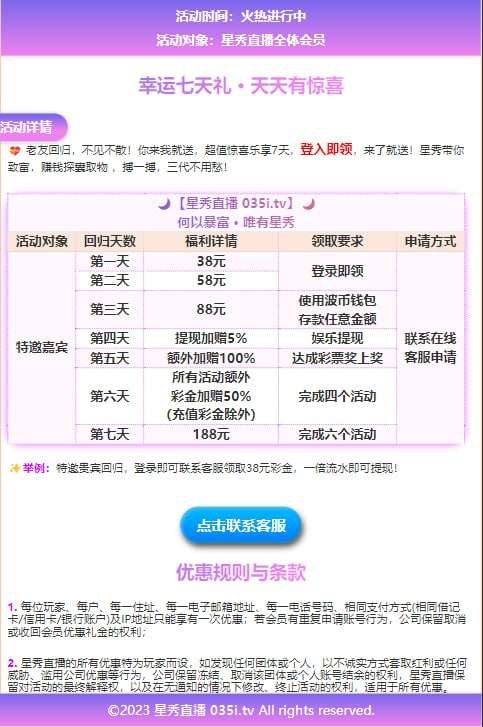 星秀老用户回归彩金
