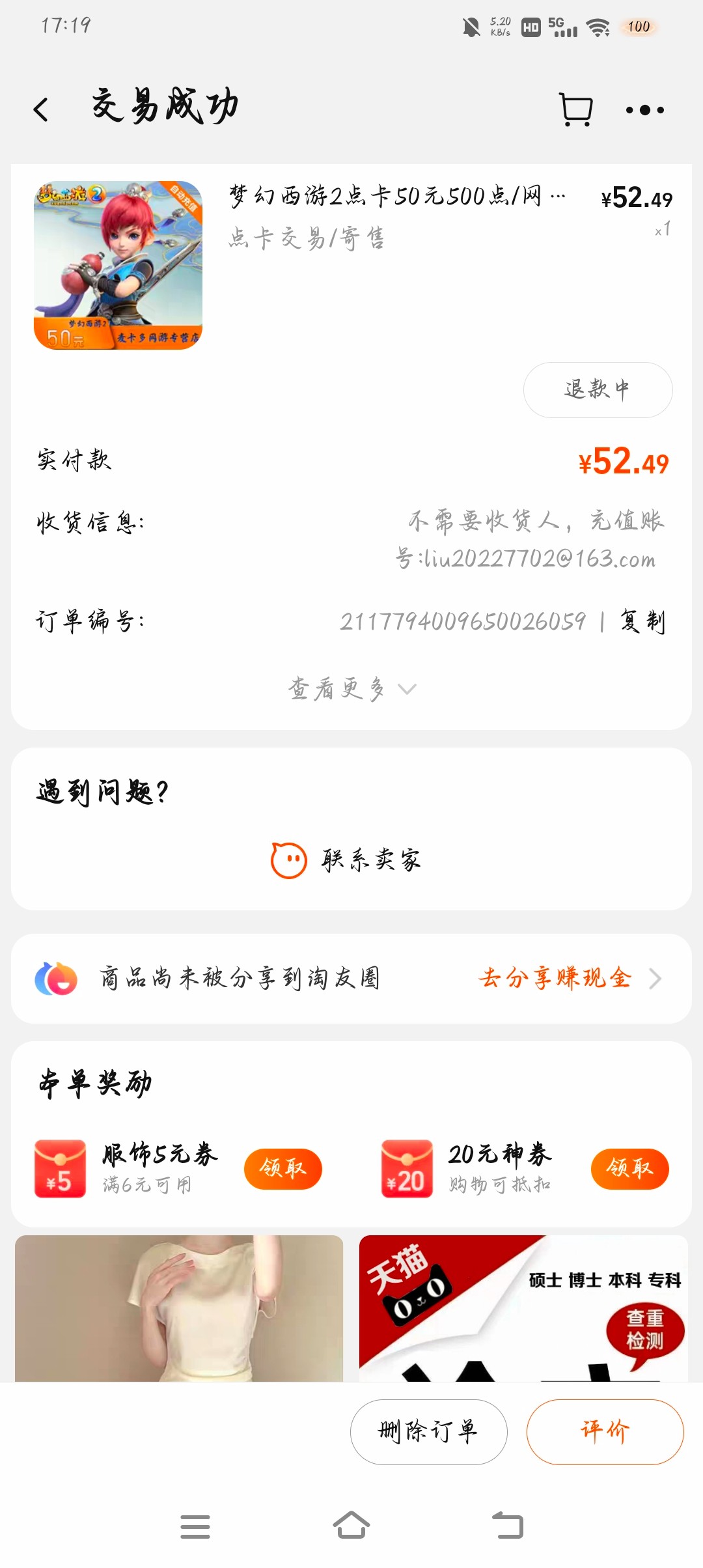 czc000 这种怎么退啊,这种游戏充值需要收货的。不能发图片,发附件不好意思