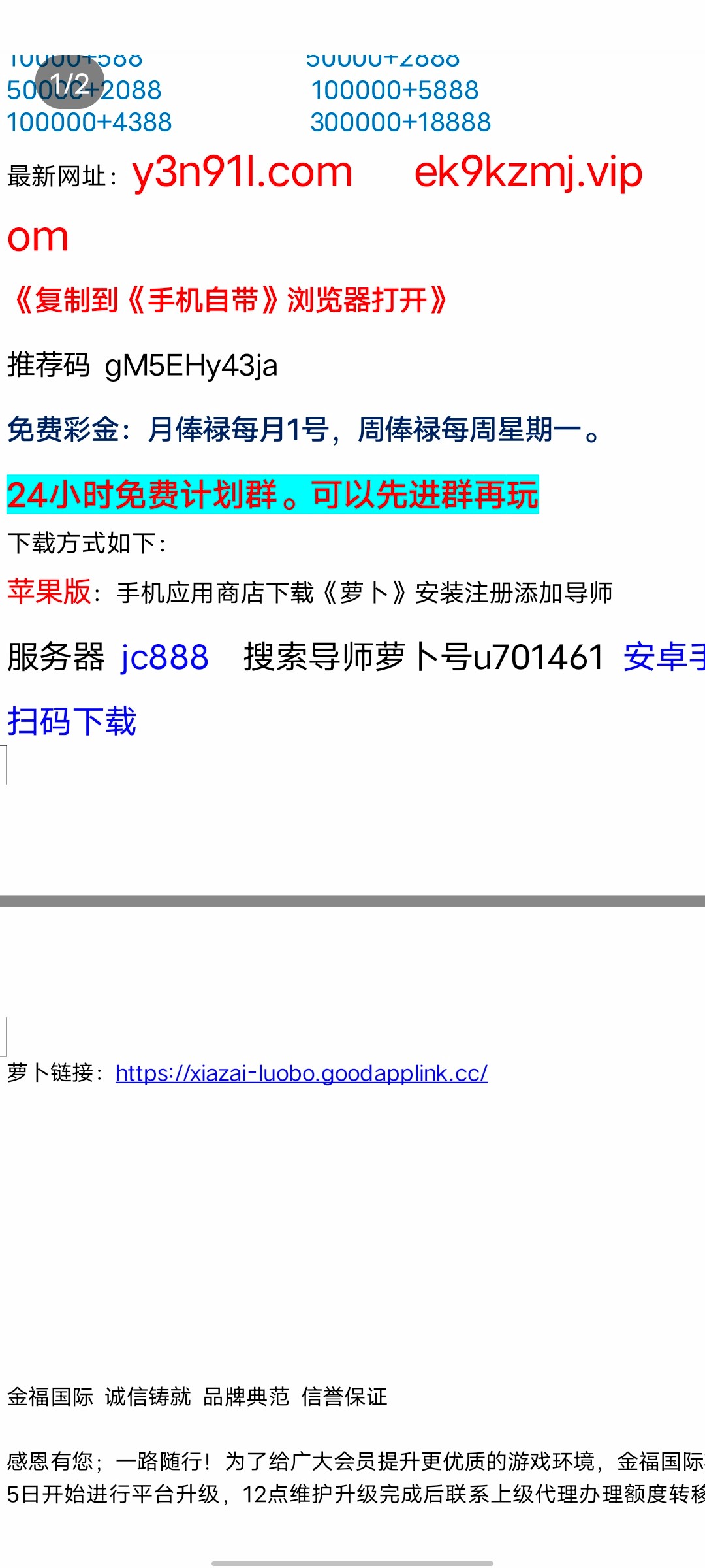 老哥们喜讯,金服之前玩过的,可以去领彩金。,之前玩过的邮箱都有,报名字字就行,我领过一次的,然后他又加我,我新报了我哥的名字,这个叫肖伟的。老哥对不起,还是个vip4,随便报个名字,他会给你账号,然后去注册那里就可以领了,这台子不黑,提钱包秒到的。老弟没打出来,打出来的老哥可以打个猪脚饭吗