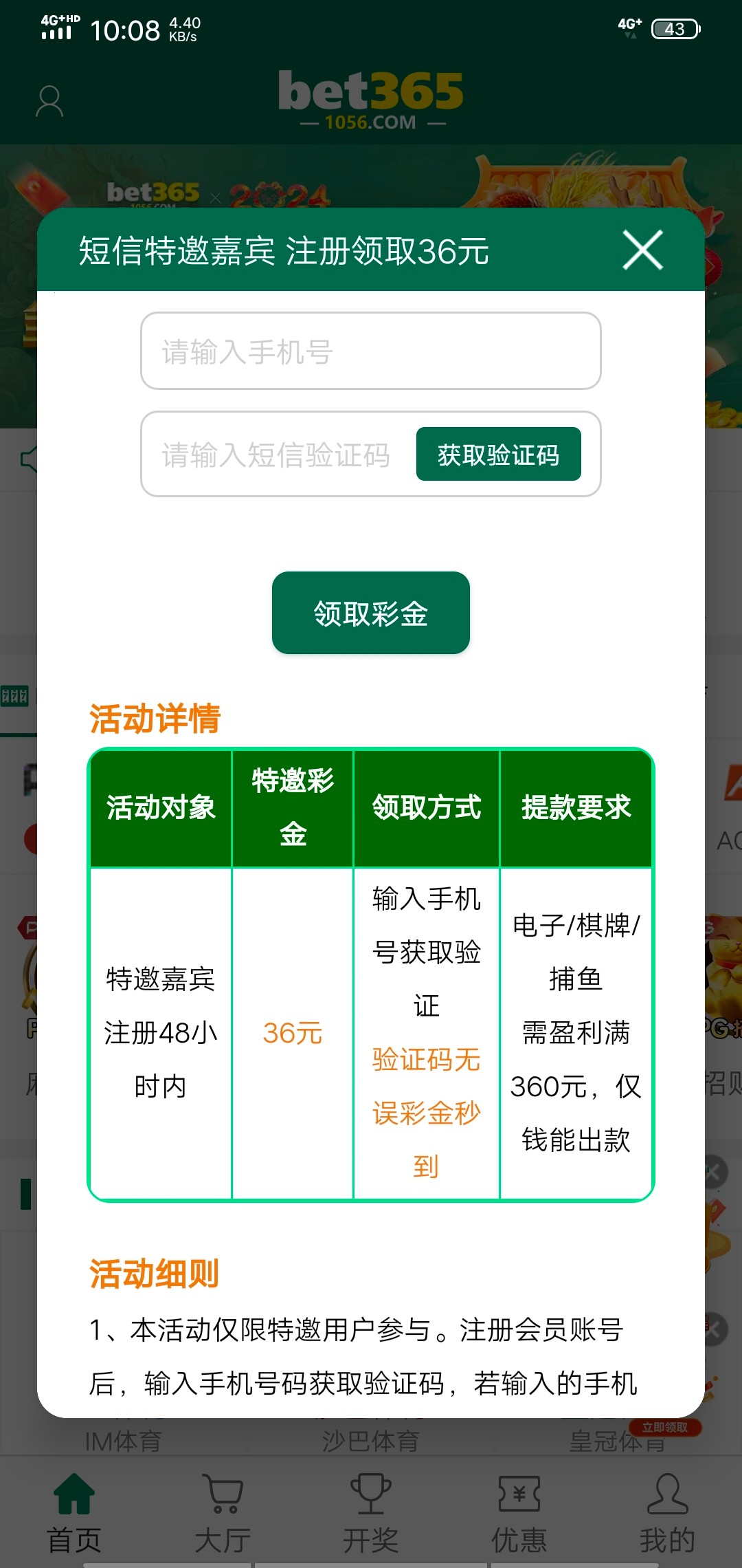 还有10块钱活动彩金,一共46上370