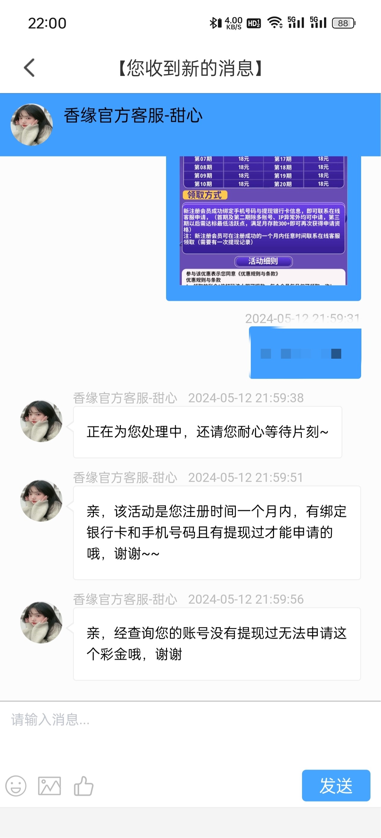 老用户登录找客服申请电话回访彩金,要图就给个境外截图即可。