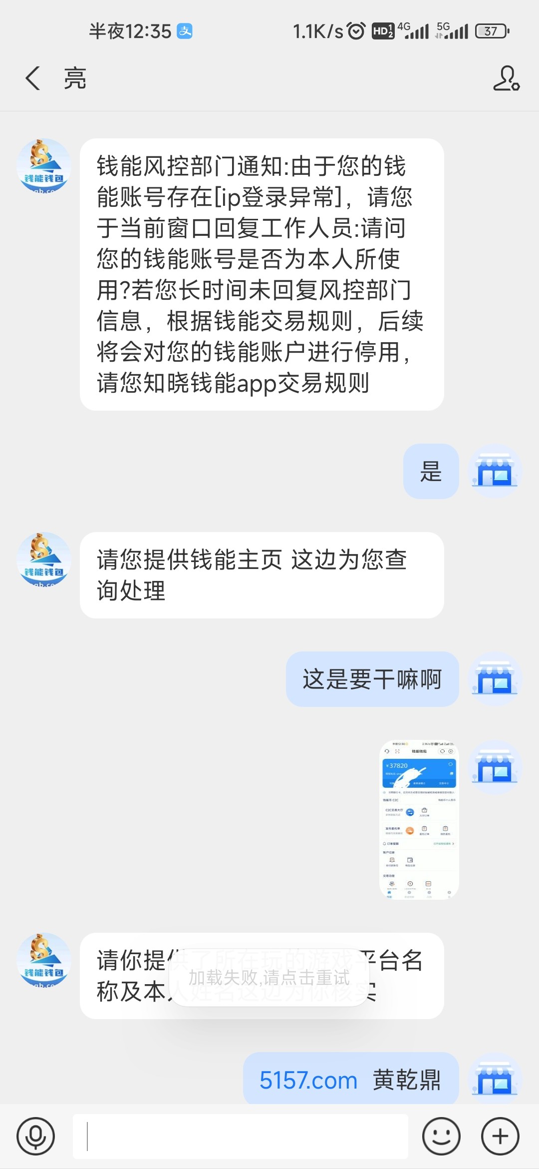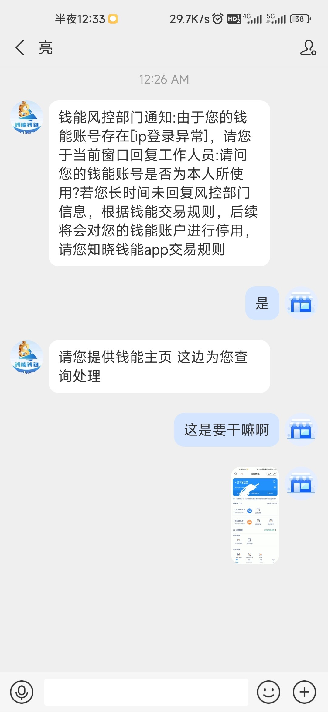 他直接点了短信链接进去,发了账号密码给假的客服 他没有去钱能app查看