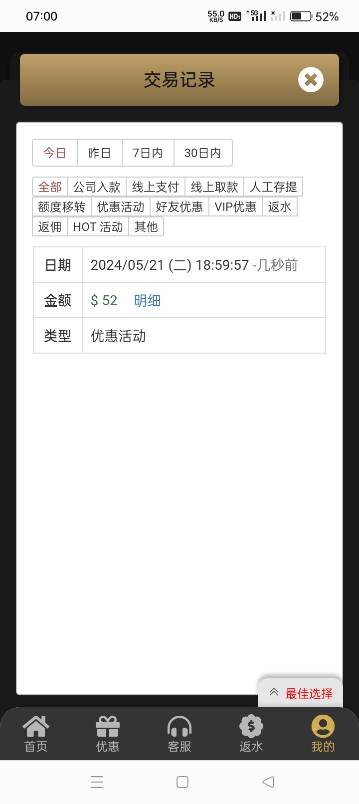 5.2提320 没充值过打到350冲了30 提款320到账