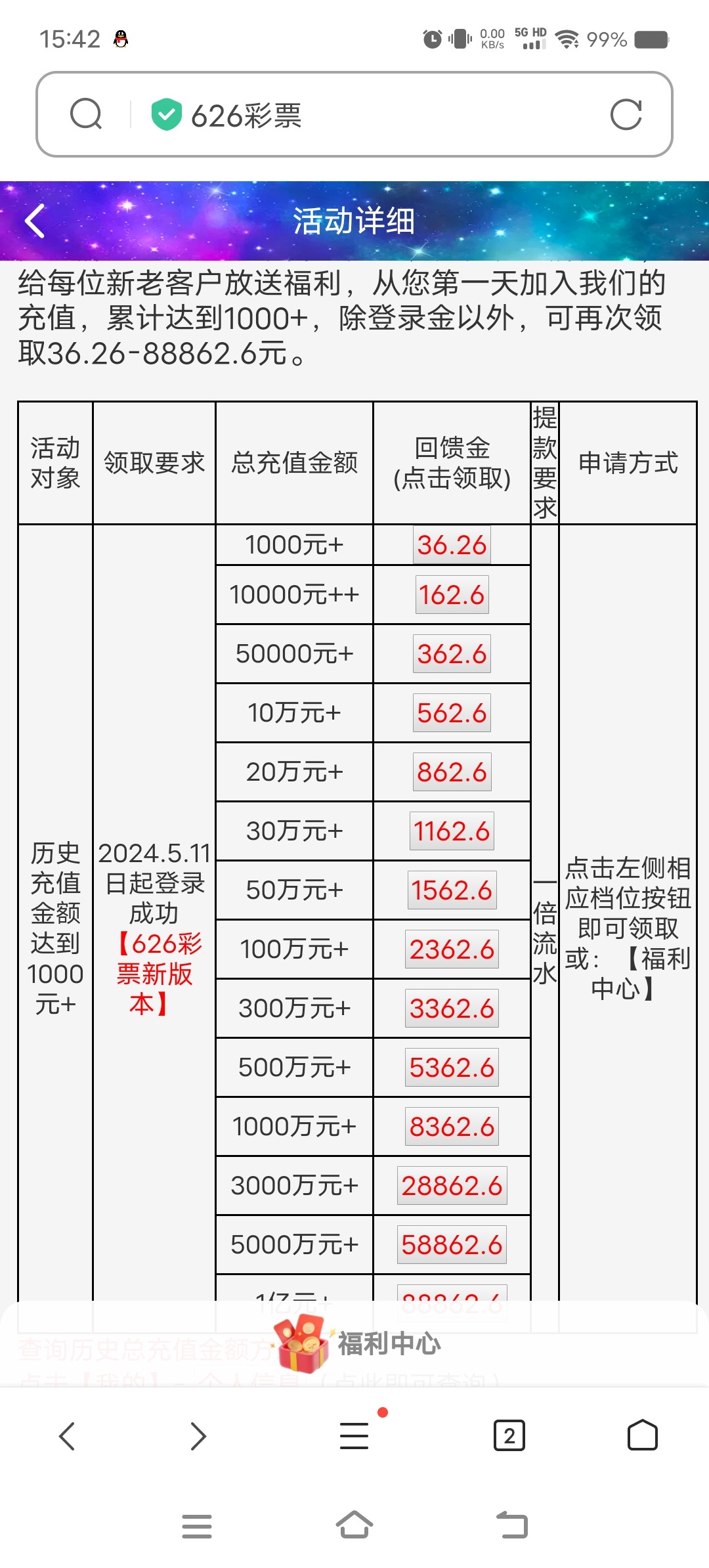 历史充过100的有回馈