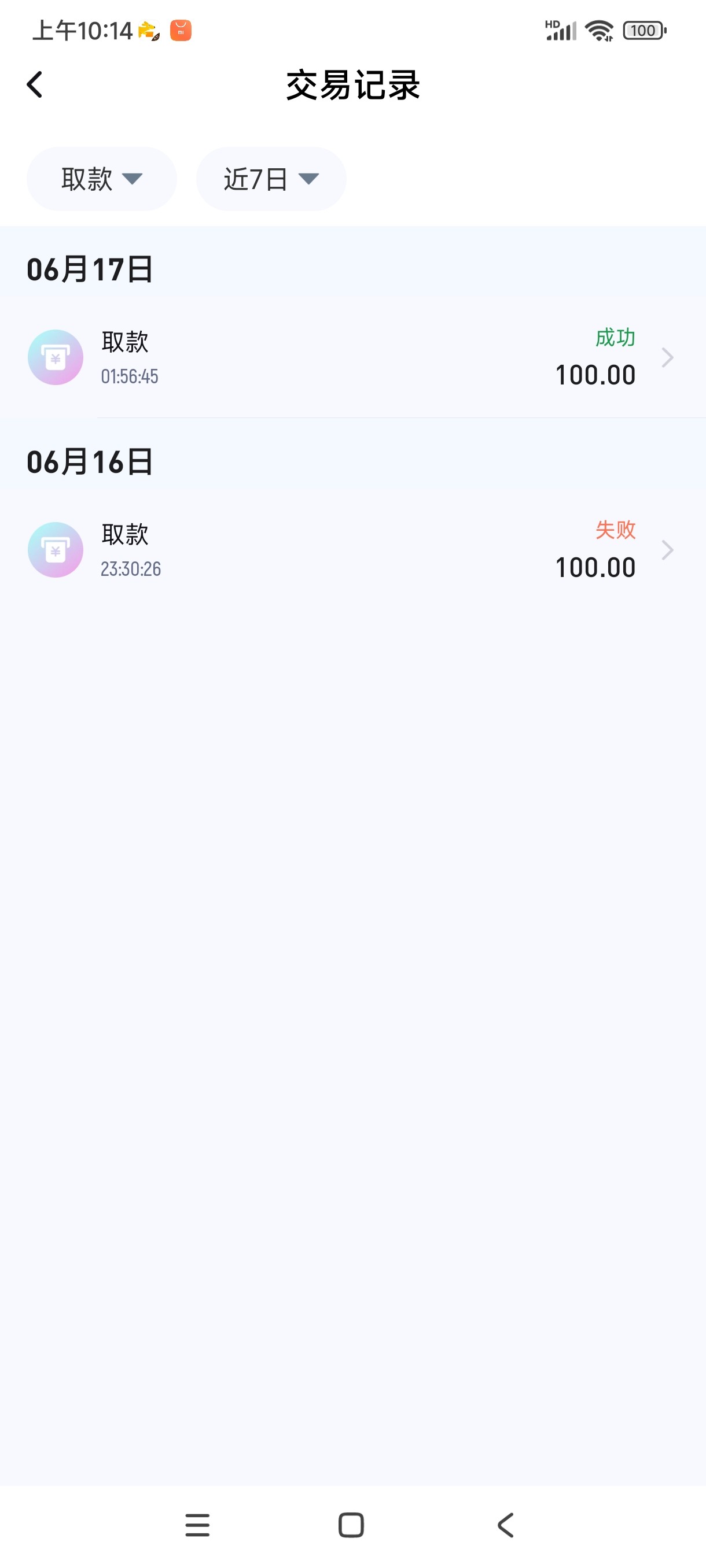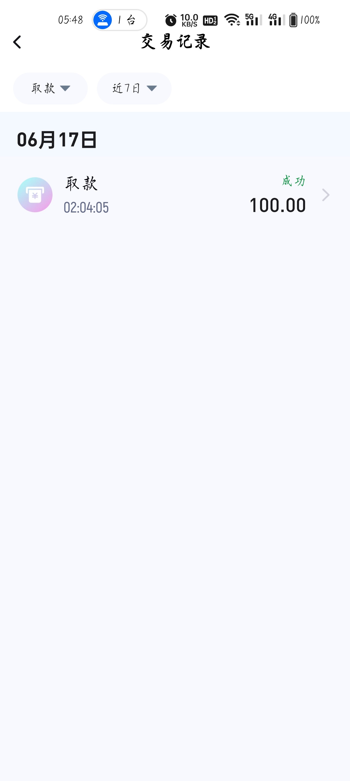 100出了,没要充值,本来上200吐回去100给他了