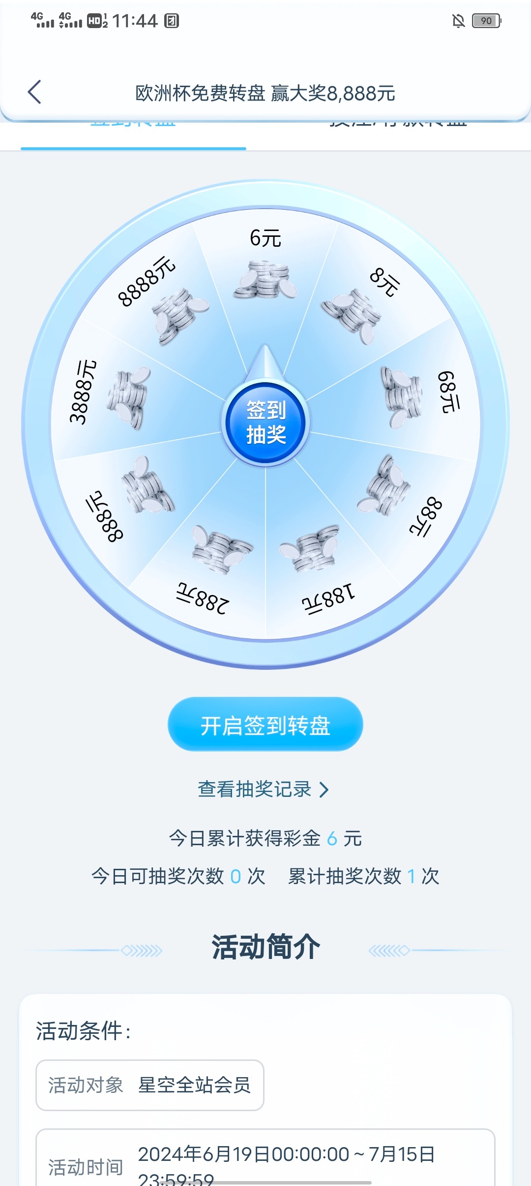 星空免费转盘以及每日答题28彩金