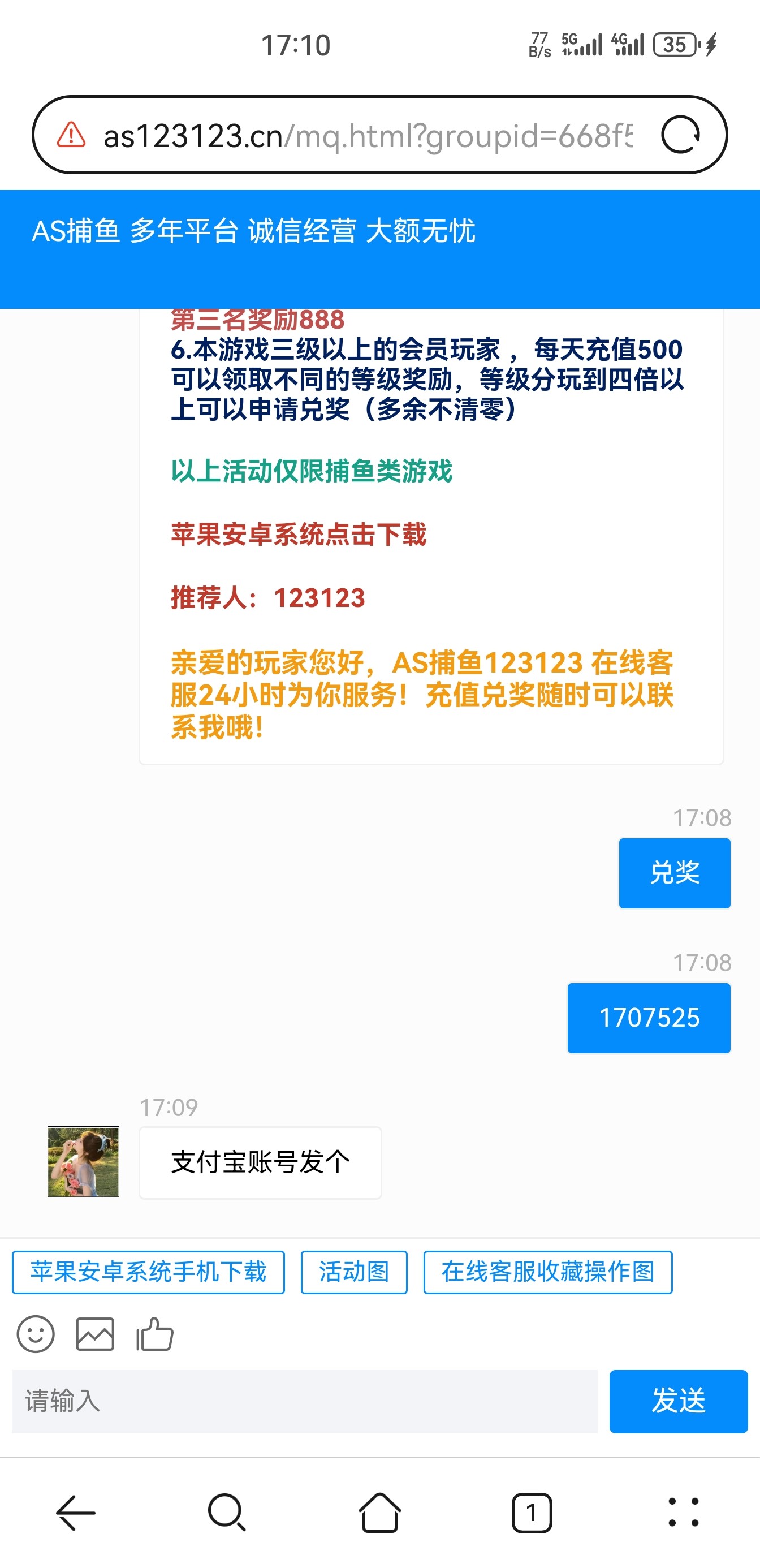 发ID到支付宝账号的 咋碰 在线客服就兑奖 不送